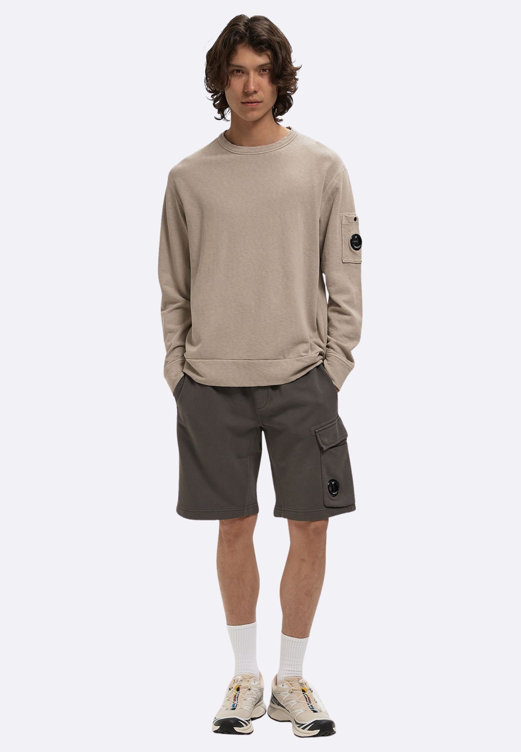 C.P. COMPANY BERMUDA GRIGIO DIAGONAL FLEECE CARGO CON LENTE - RSCMSB741A110044R