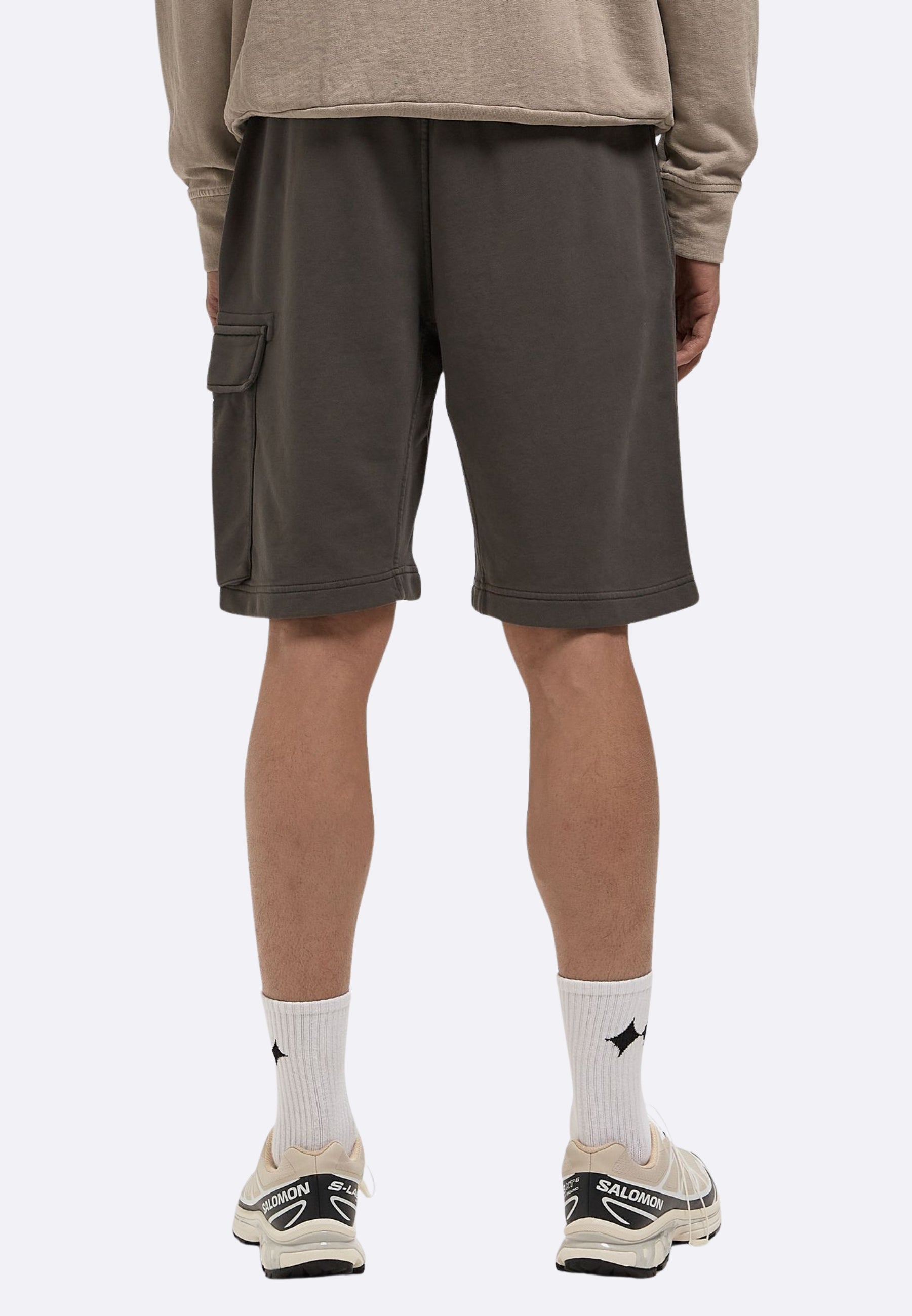 - Tasca cargo con patta e chiusura a bottone con dettaglio di lente