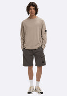 I pantaloncini C.P. Company Cotton Diagonal Fleece Cargo sono realizzati in morbido pile diagonale di cotone di medio peso che offre calore e comfort. Presentano una coulisse regolabile in vita, tasche laterali e una tasca cargo con chiusura a scatto e l'iconico logo C.P. Company. Il trattamento di tintura in pezza conferisce ai pantaloncini un aspetto irregolare e vissuto.
