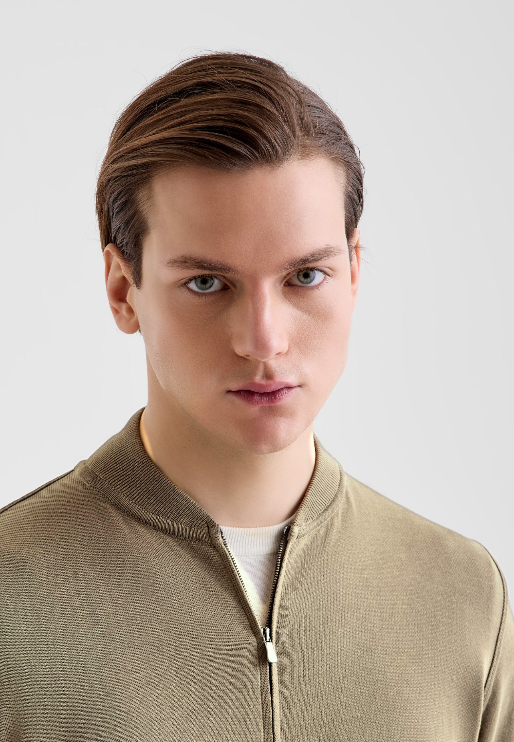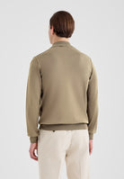 Il bomber Filippo De Laurentiis in cotone crêpe rasato è un capo che conquista con la sua eleganza silenziosa e la sua texture sofisticata. La superficie liscia e compatta della maglia rasata incontra l’aspetto leggermente increspato e granuloso tipico del filato crêpe, creando un equilibrio perfetto tra pulizia delle linee e ricchezza materica.