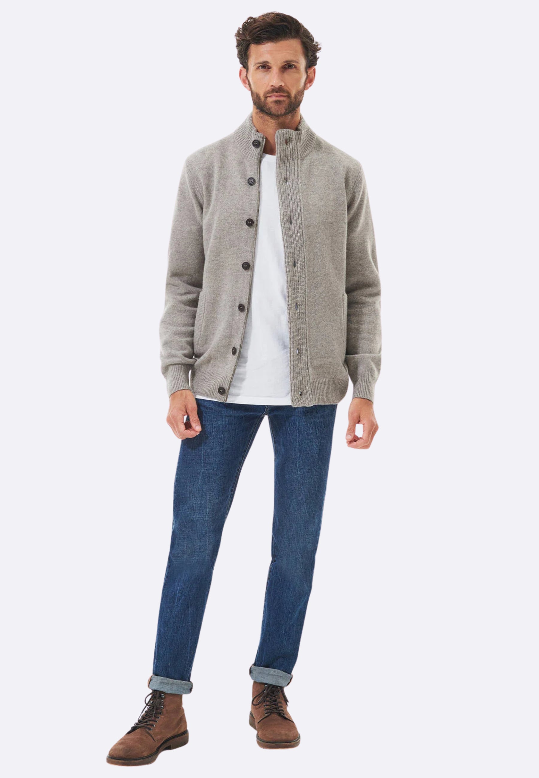 Barbour Cardigan Beige Zip e Bottoni in Lana - Zip Patch