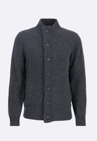 Barbour Cardigan Grigio Scuro in Lana con Zip e Bottoni - Zip Patch