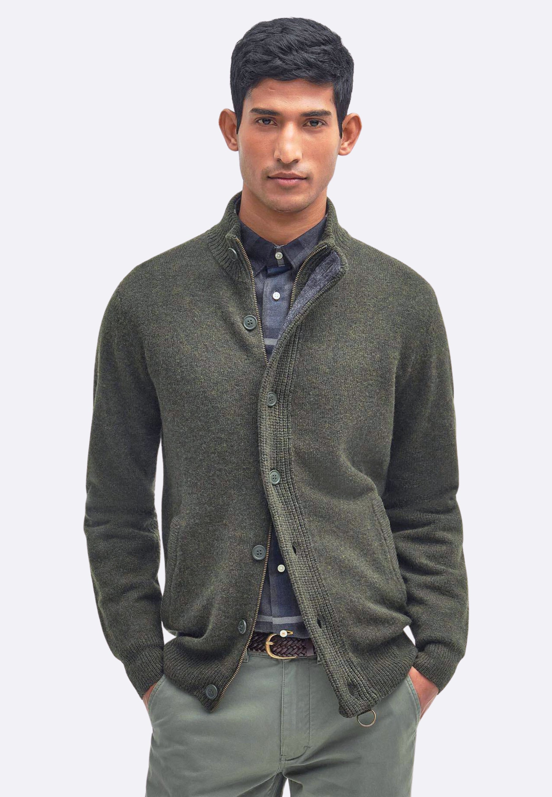 Barbour Cardigan Verde Zip e Bottoni in Lana - Zip Patch