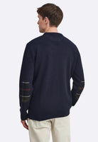 Barbour Maglione Holden Girocollo Blu con Toppa su Gomito