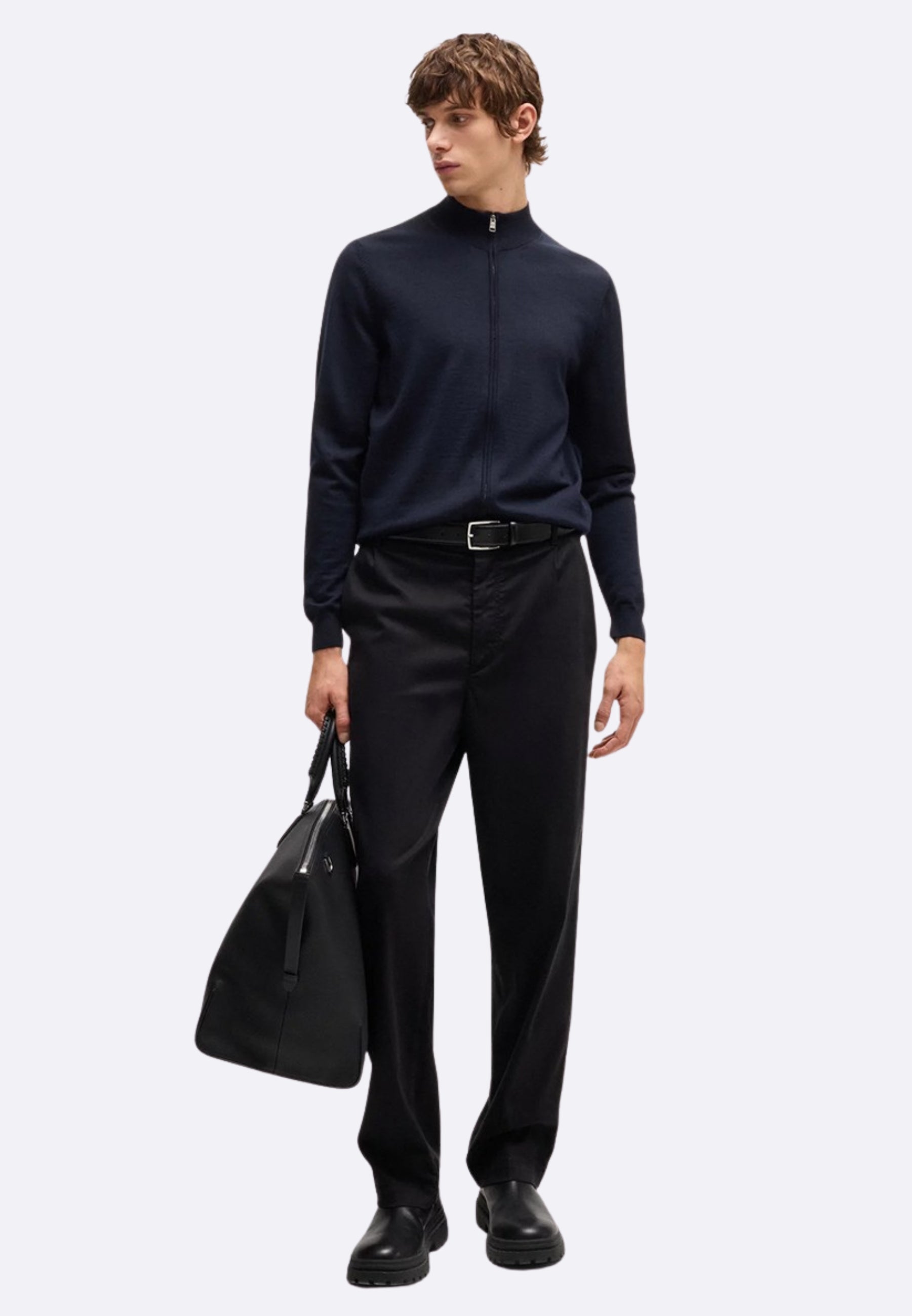 Boss Cardigan con Zip Balonso-L Blu in Lana Vergine