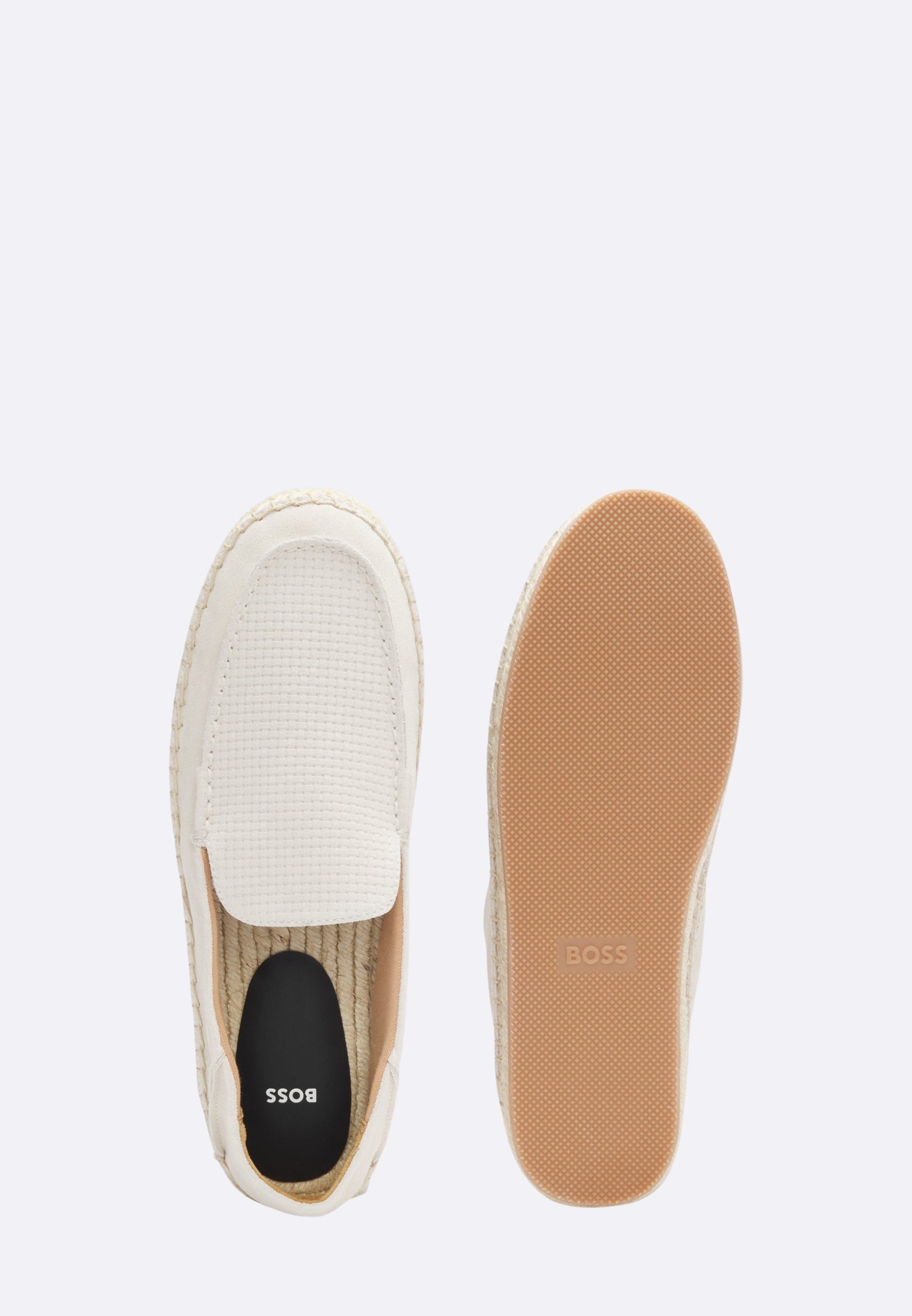Dotate di intersuola in juta tradizionale, queste espadrillas BOSS Uomo sono realizzate in morbida pelle scamosciata. Logo in rilievo. Tomaia lavorata. Questo prodotto contiene almeno l'80% di materie prime di qualità superiore. La pelle usata per realizzare questo prodotto proviene da concerie certificate.