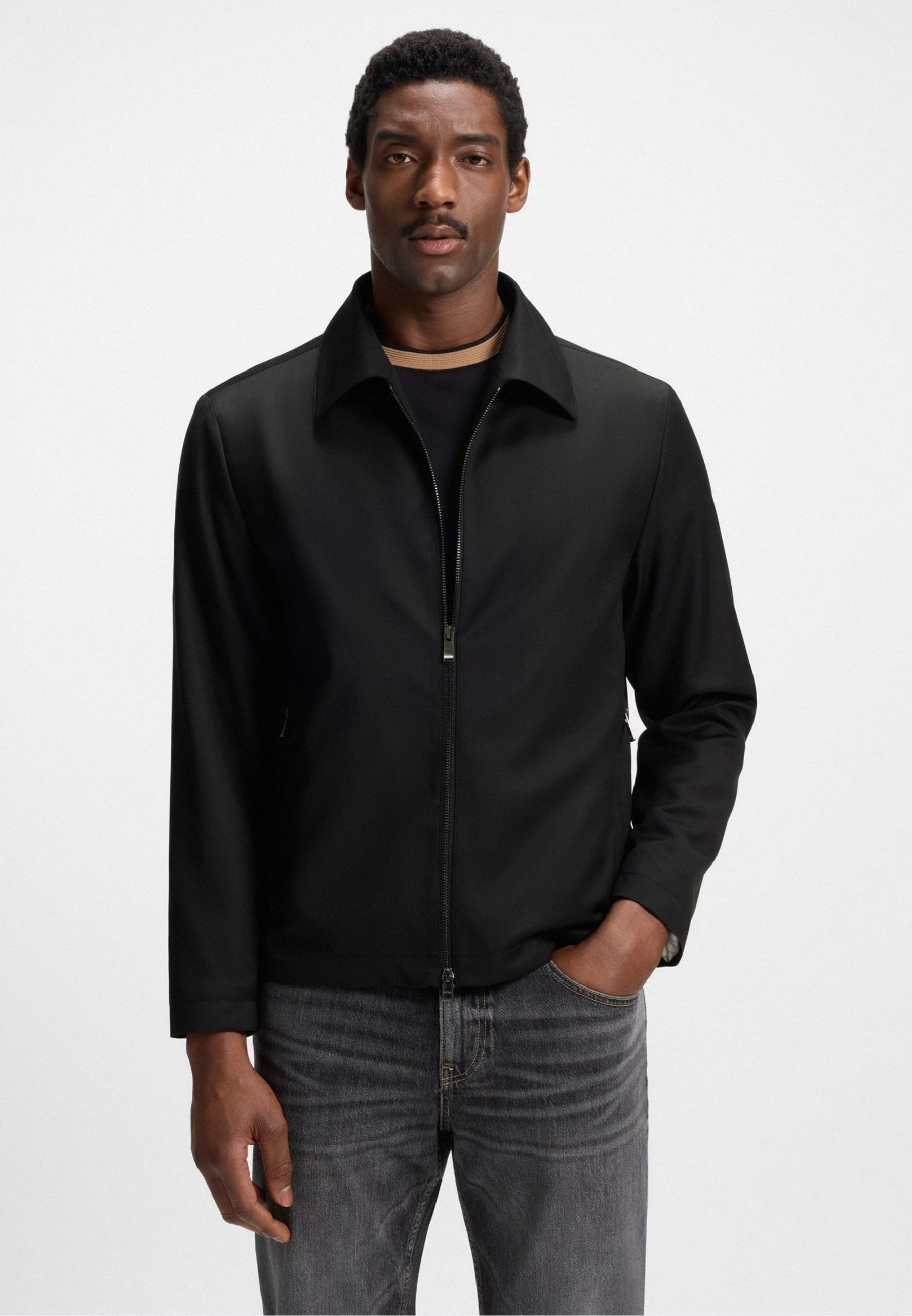 Boss Giacca Camicia Nera in Lana con Zip Hanry-Wing