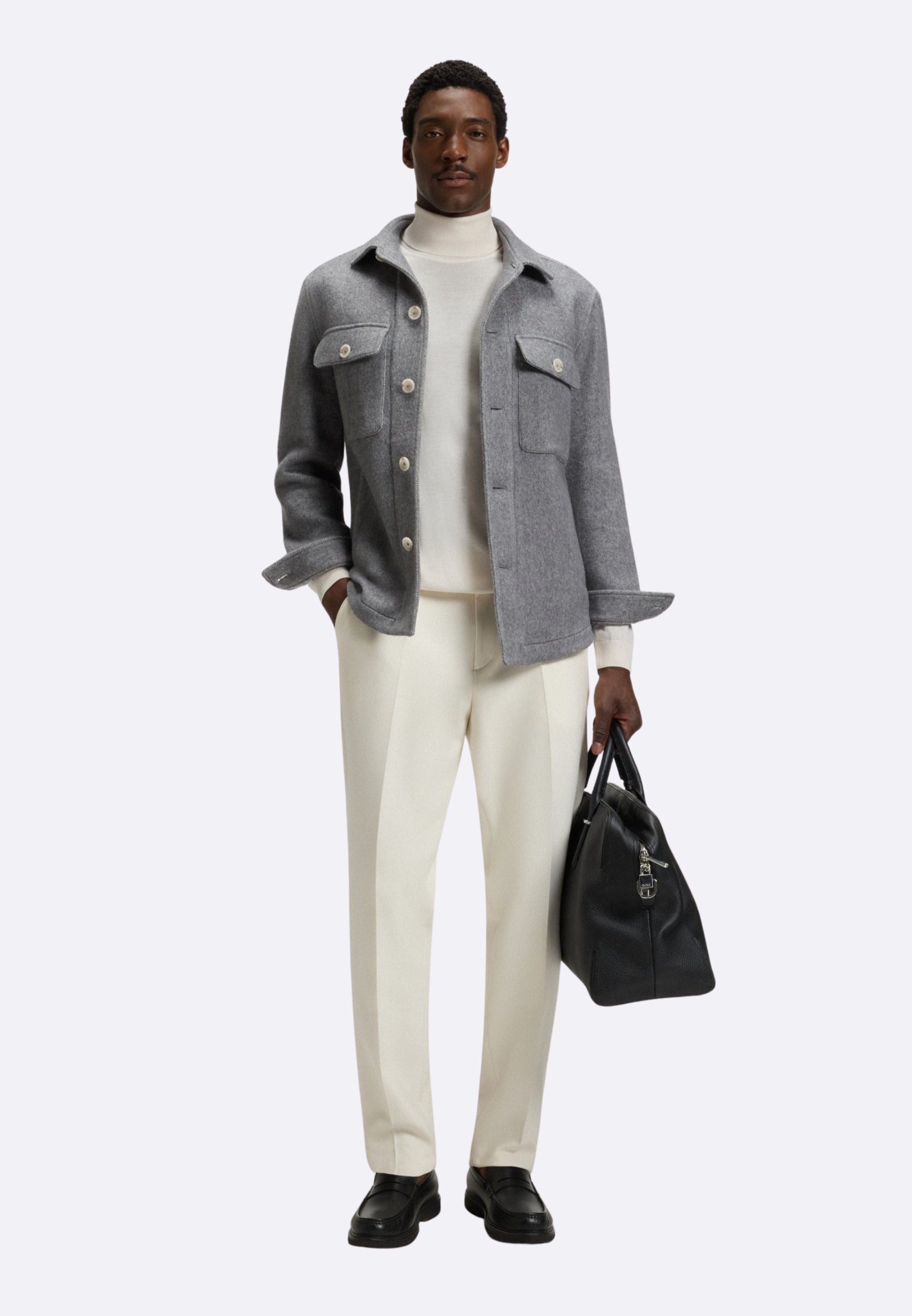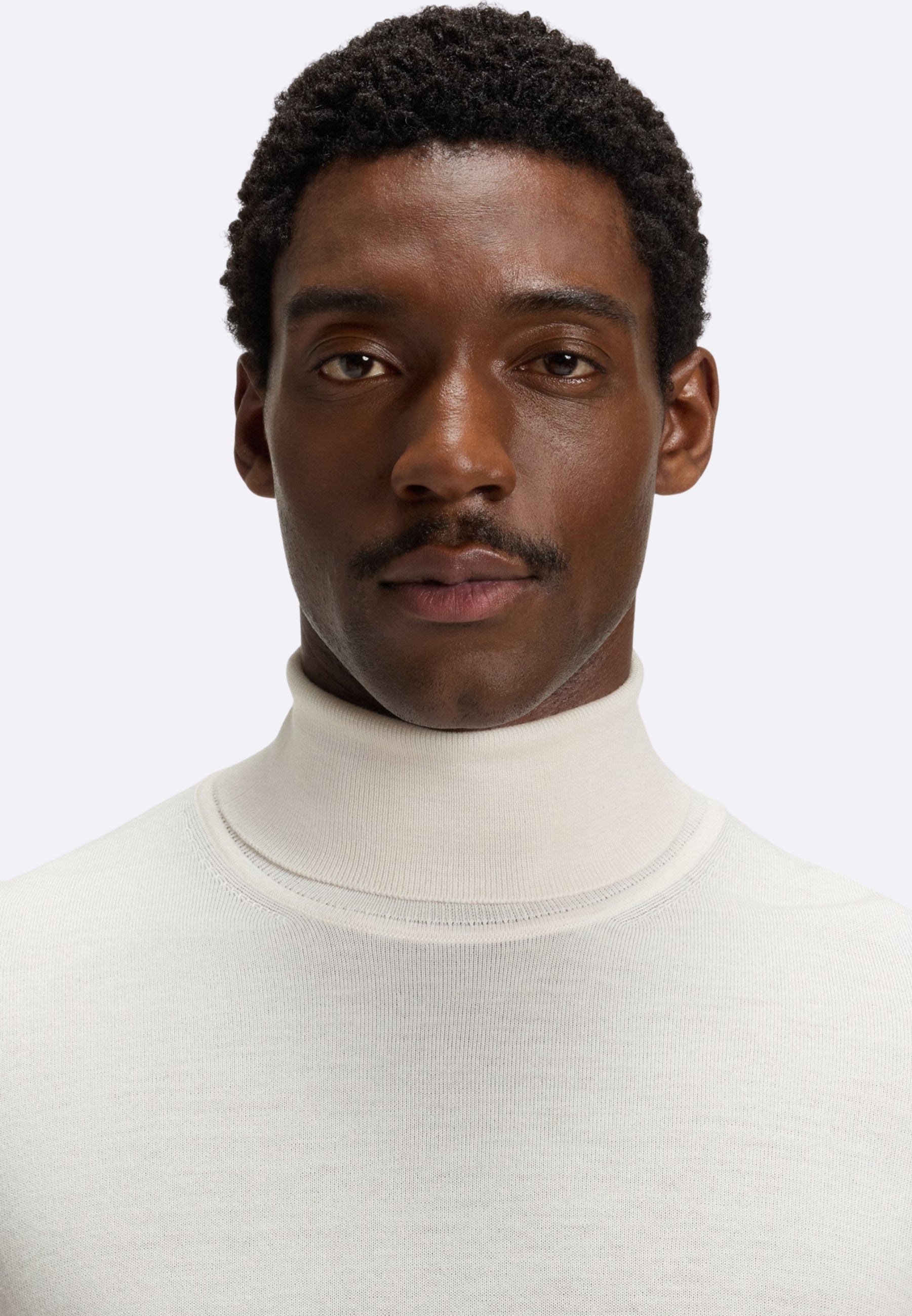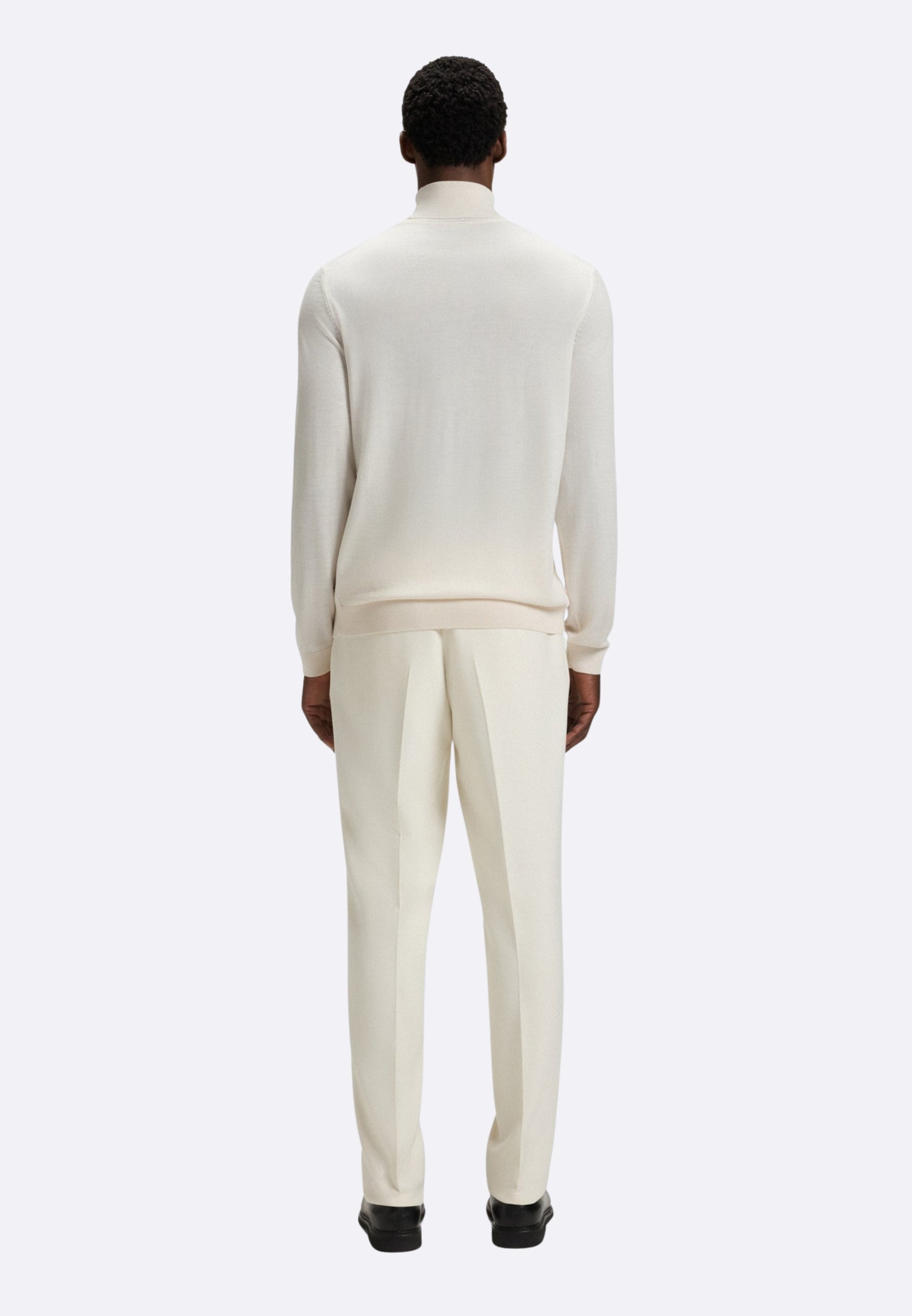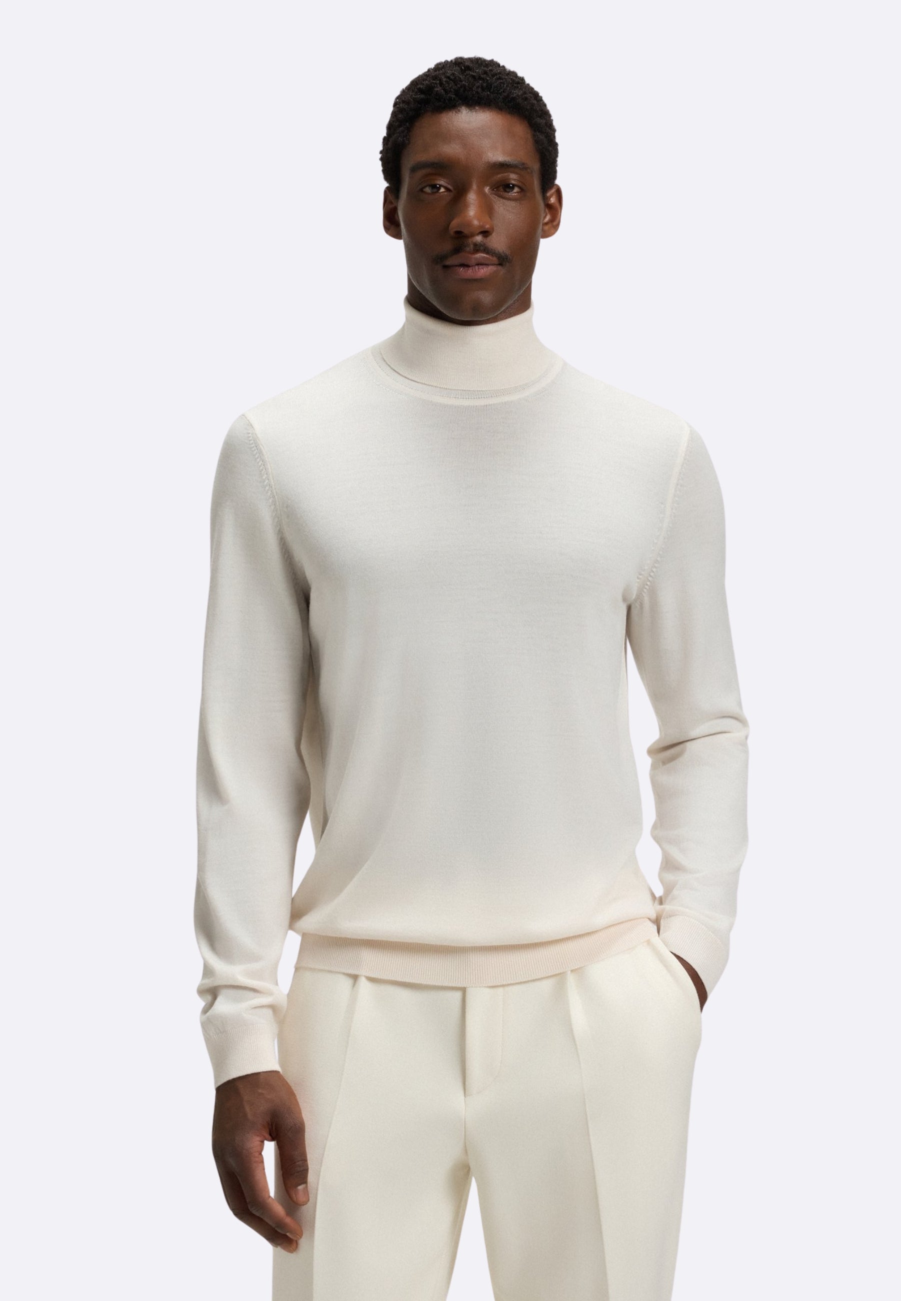Boss maglia collo alto bianco in lana merino extra fine