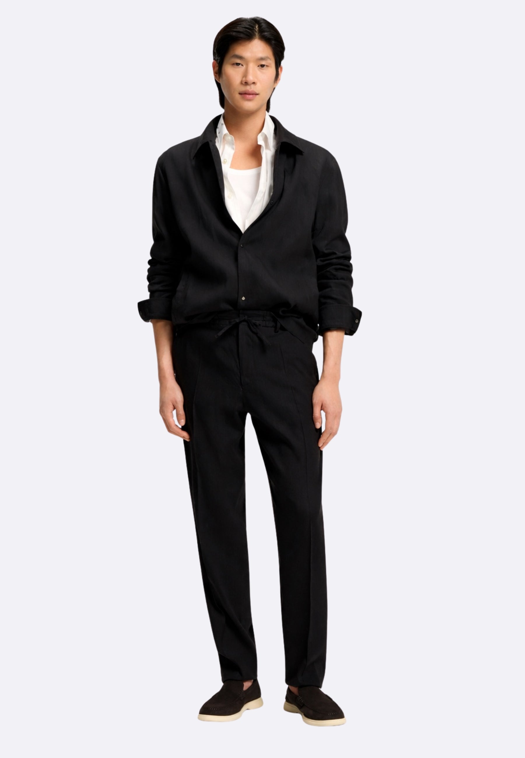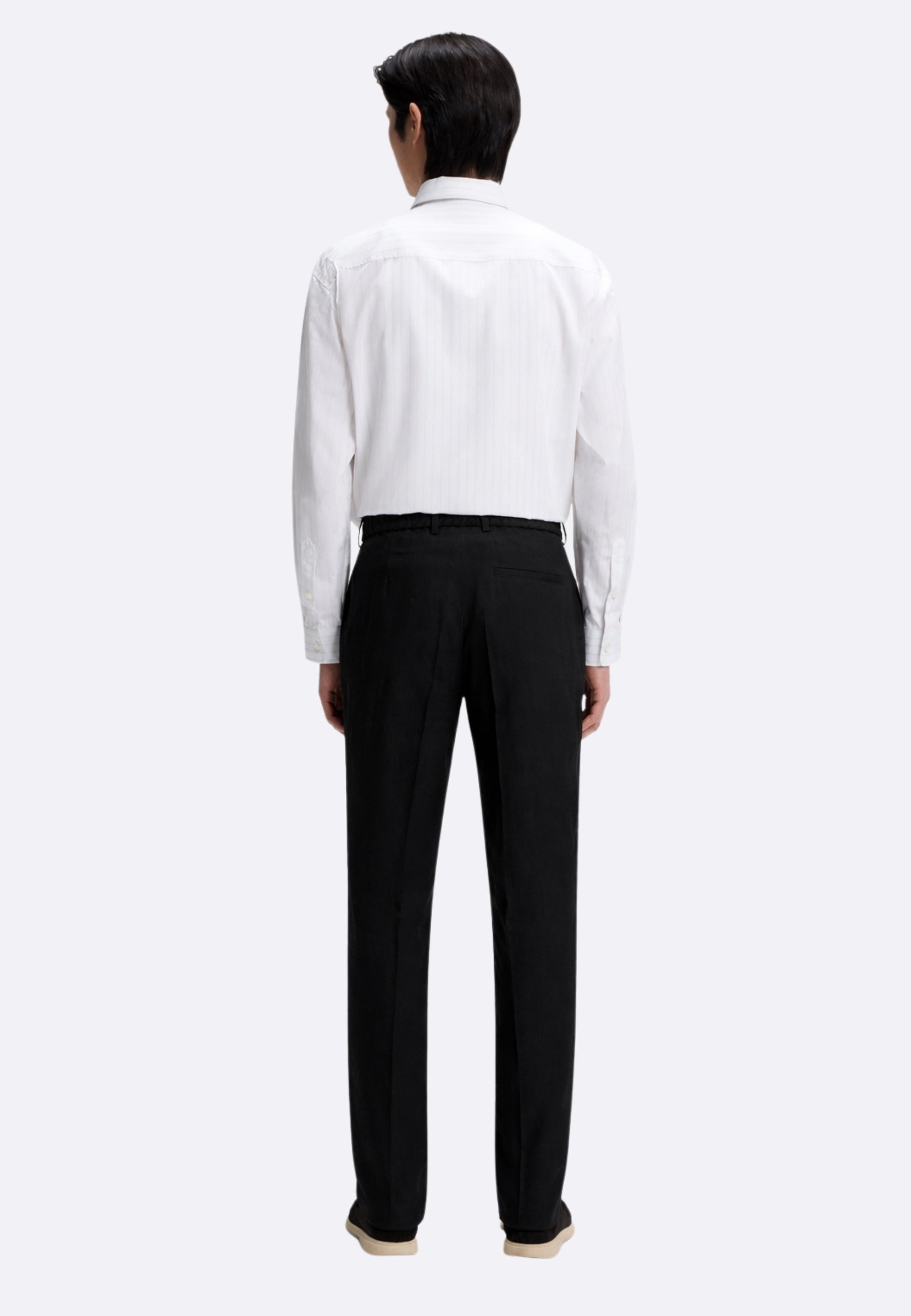PANTALONI CON FIT AFFUSOLATO IN MISTO LINO Questi pantaloni BOSS Uomo con fit affusolato combinano stile sartoriale, comfort e performance. Realizzati in misto lino traspirante, lavabile e elasticizzato. Coulisse reversibile. Taglio a cono Vita media Chiusura con bottoni Taglio a cono Parte anteriore piatta Tasche davanti in basso: Taschino francese Tasche dietro in basso: Tasca con pistagna Senza fodera interna MODELLO P-PERIN-RDS-WG-262 - 50561973