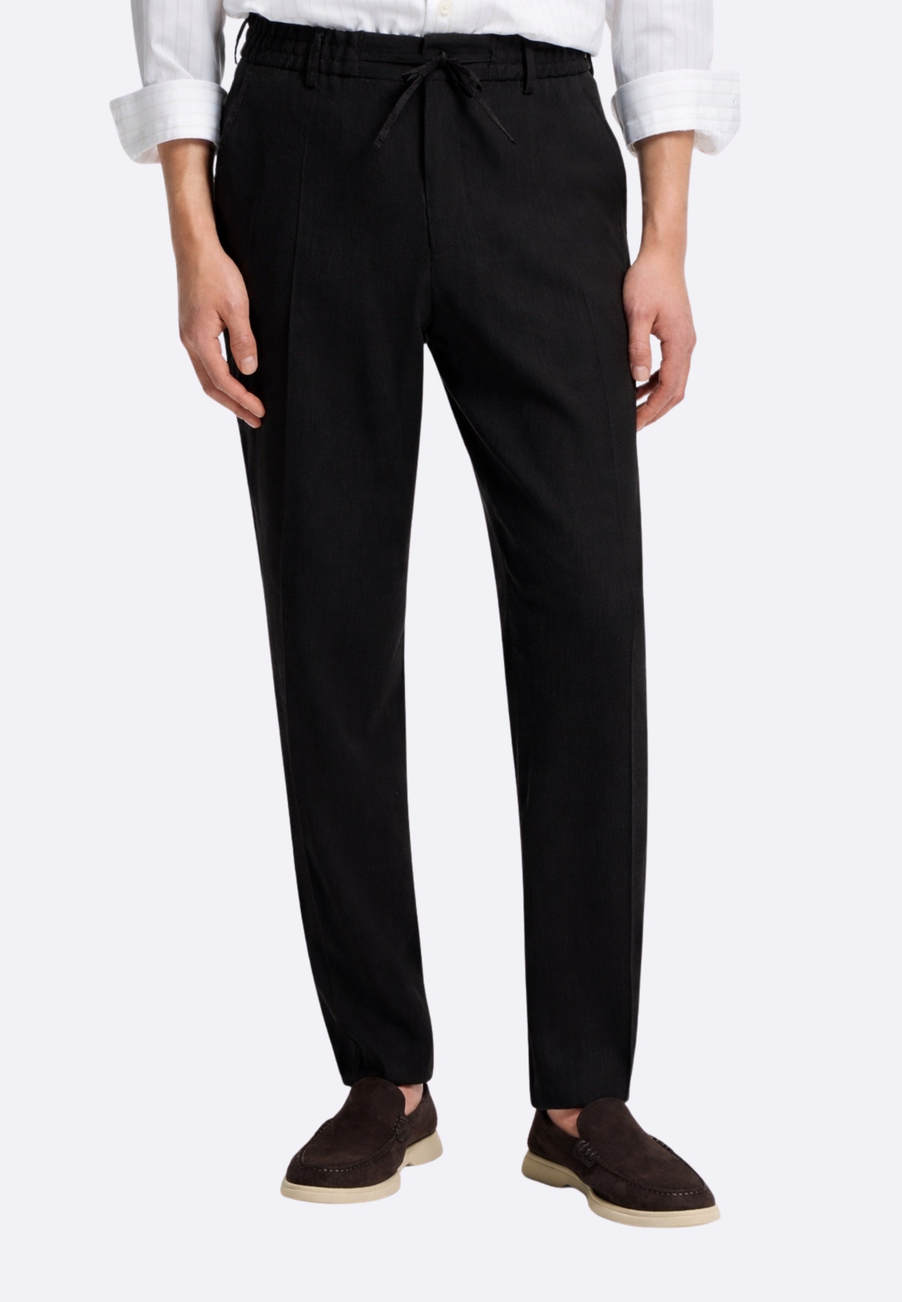 Boss Pantaloni Perin in Misto Lino Nero Fit Regolare