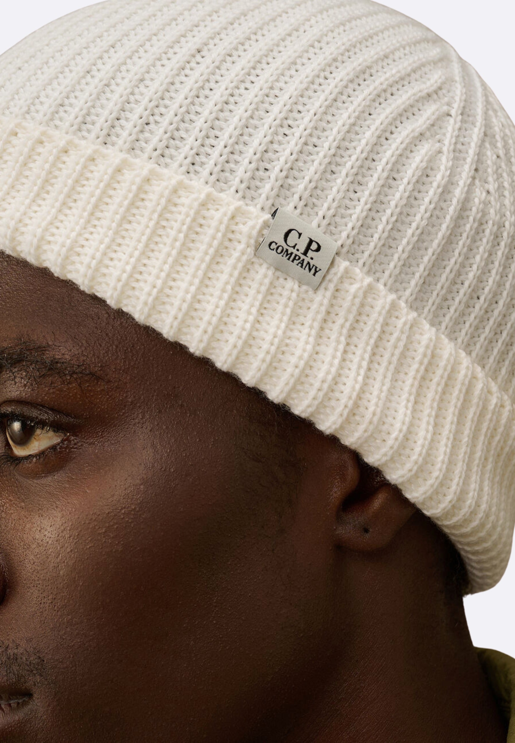 C.P. Company Cappello in Merino Extrafine Bianco - Fisherman Beanie