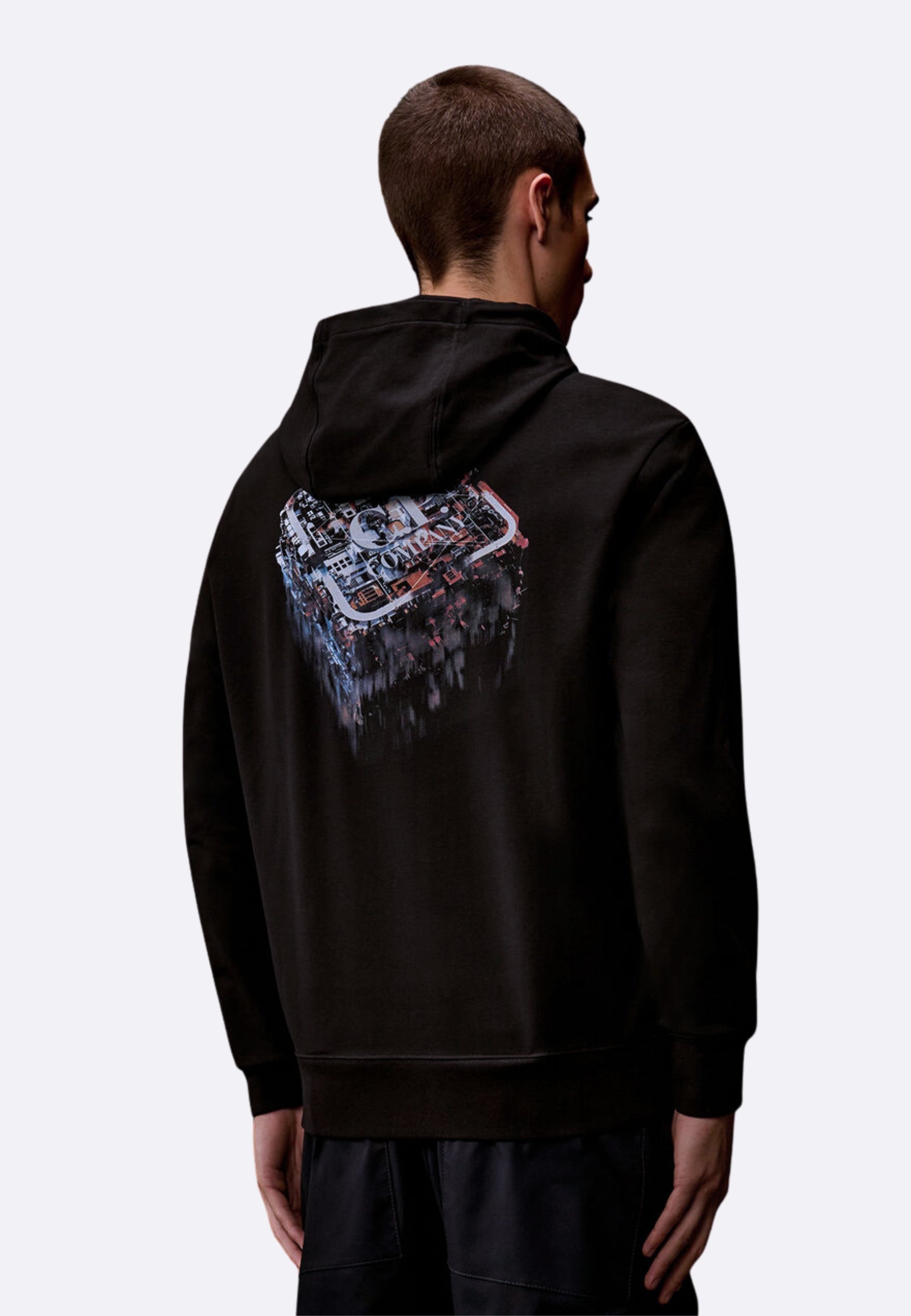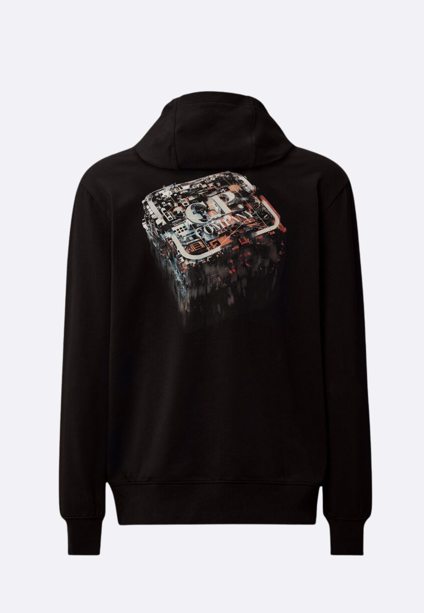 C.P. Company felpa con cappuccio nera con stampa sul retro - Metropolis Graphic Hooded