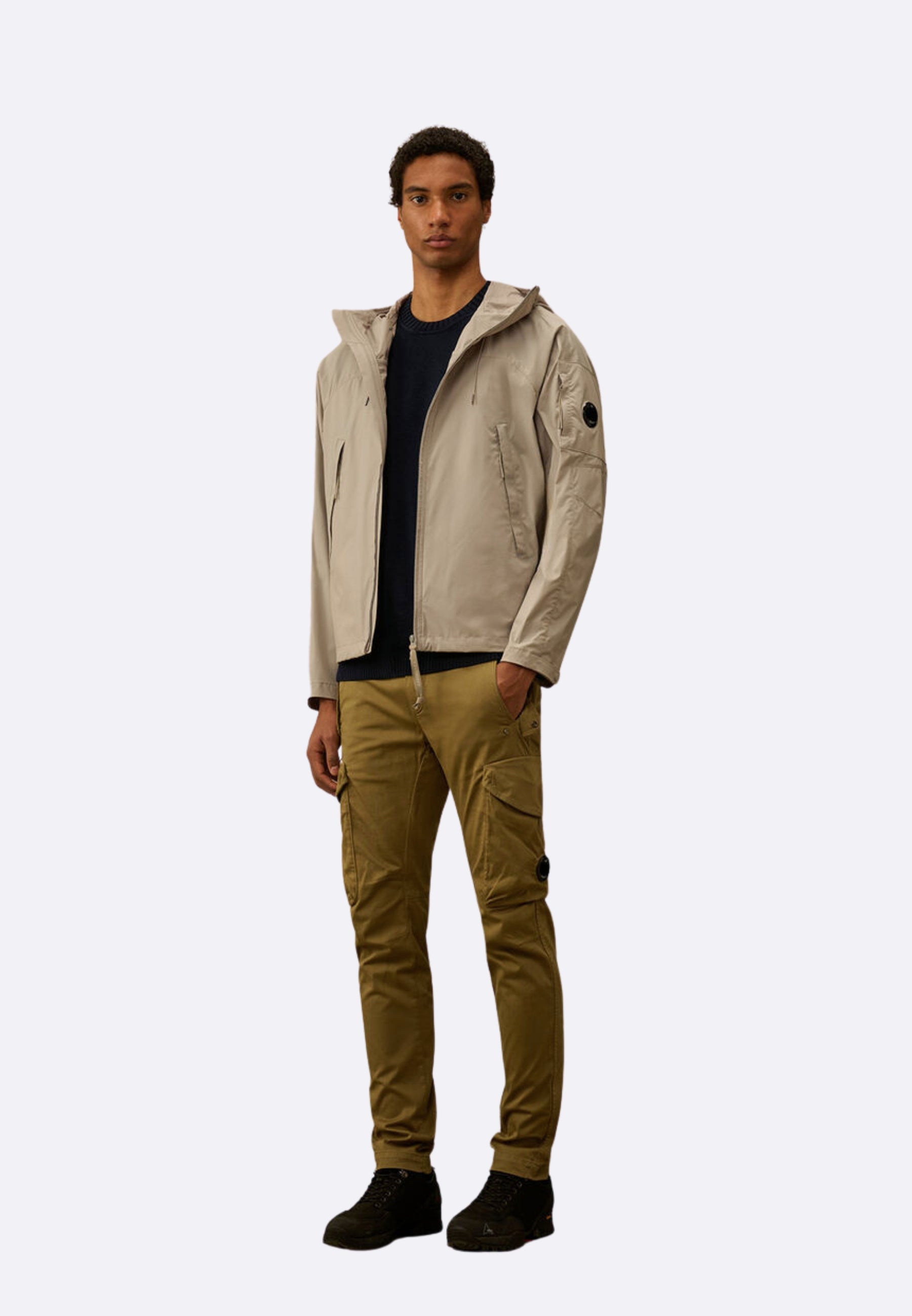 Giacca con cappuccio realizzata in Pro-Tek, un poliestere mechanical stretch che unisce la leggerezza e il comfort di una maglia alle prestazioni protettive di un capospalla tecnico.Il modello presenta un cappuccio regolabile, chiusura full zip a doppio cursore e tasche laterali nascoste con zip. Completa il design il taschino con l’iconica Lente di C.P. Company sulla manica. I polsini regolabili con patta e bottoni automatici e l’orlo con coulisse assicurano comfort e funzionalità. Trattata anti-goccia. Regular fit.