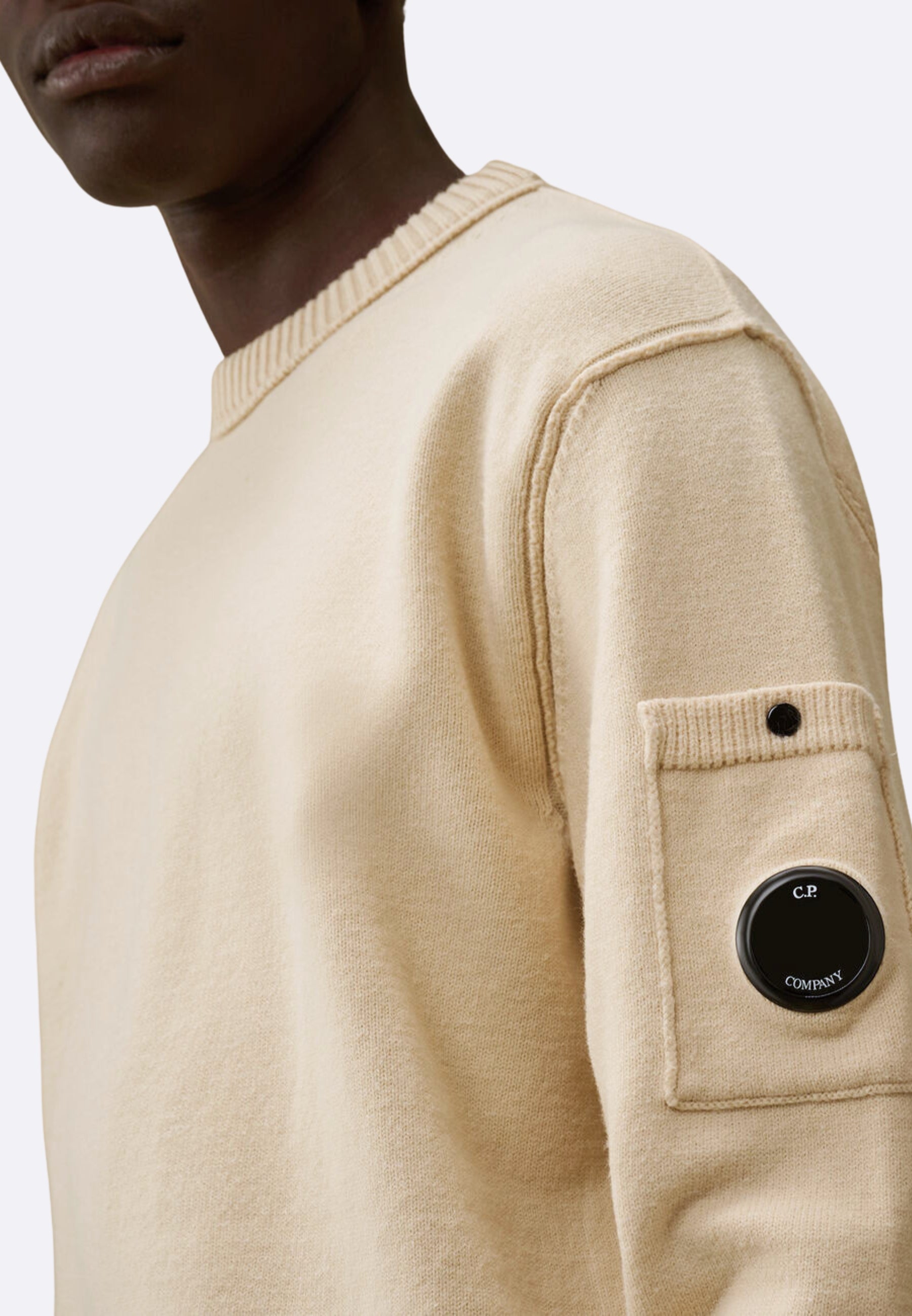 C.P. Company Maglia Girocollo Beige in Cotone Invernale - Soft Cotton Stretch