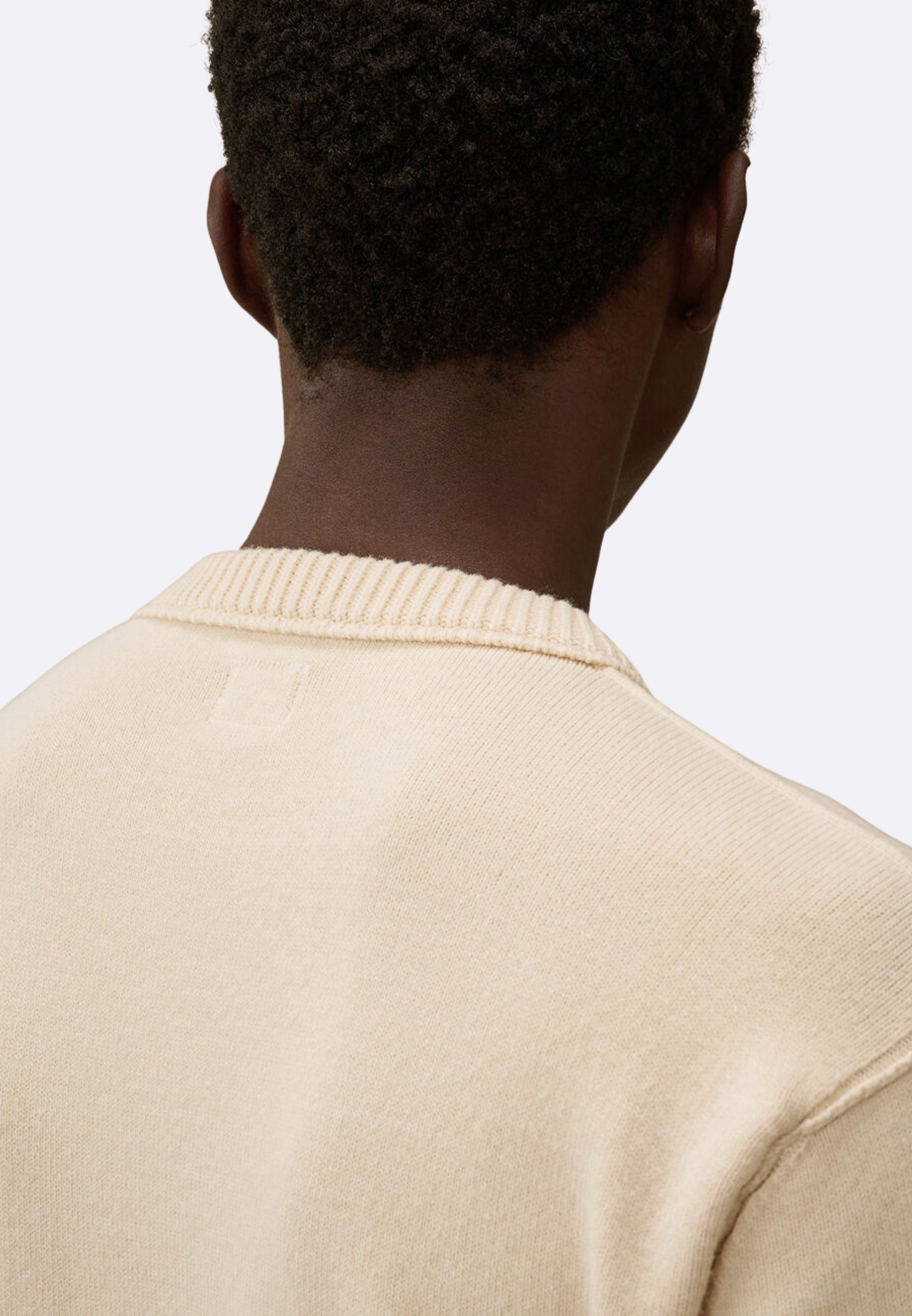 Maglione girocollo realizzato in morbido cotone stretch. Il tessuto garantisce flessibilità e comfort mantenendo un look essenziale. Il capo presenta l’iconica Lente di C.P. Company e cuciture a contrasto sul giromanica. Finezza 7. Regular fit.