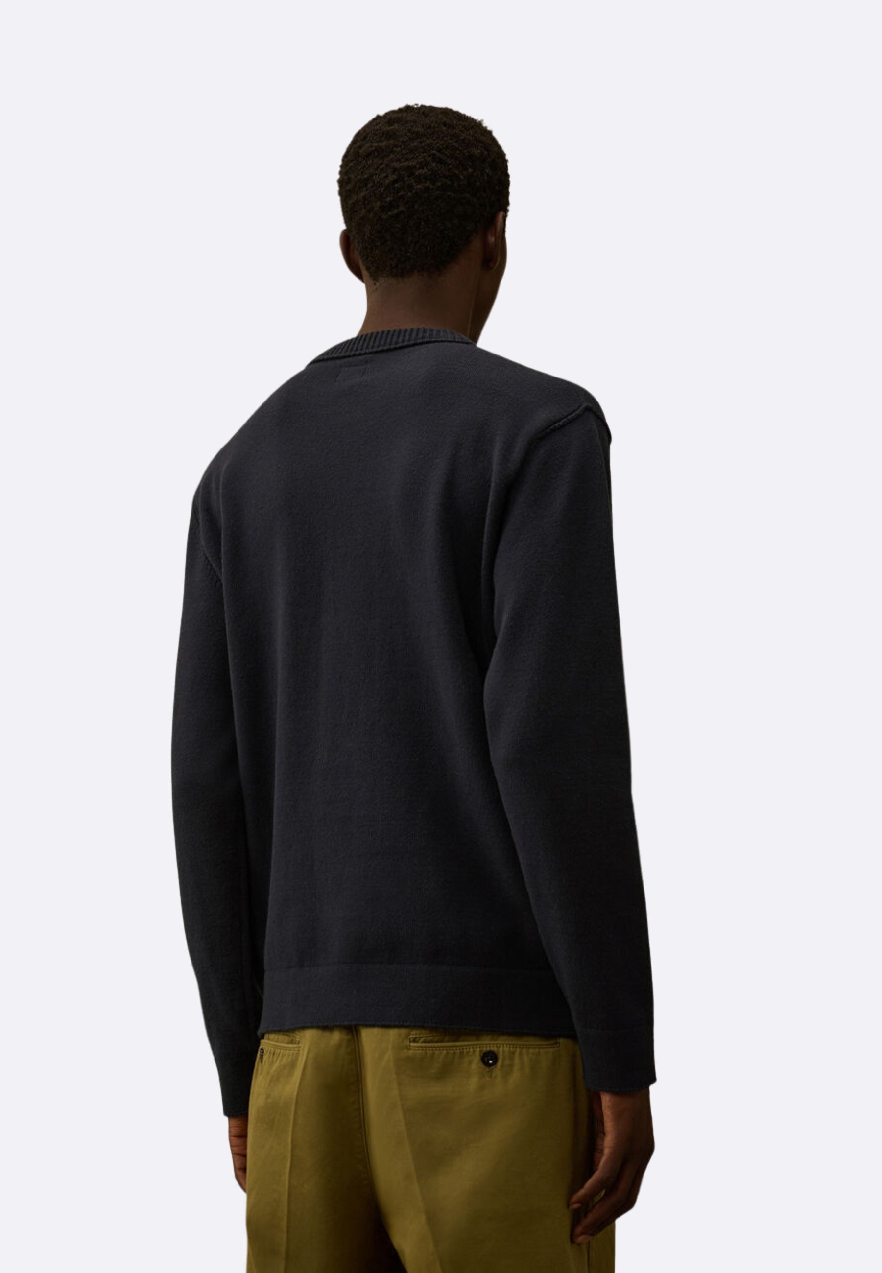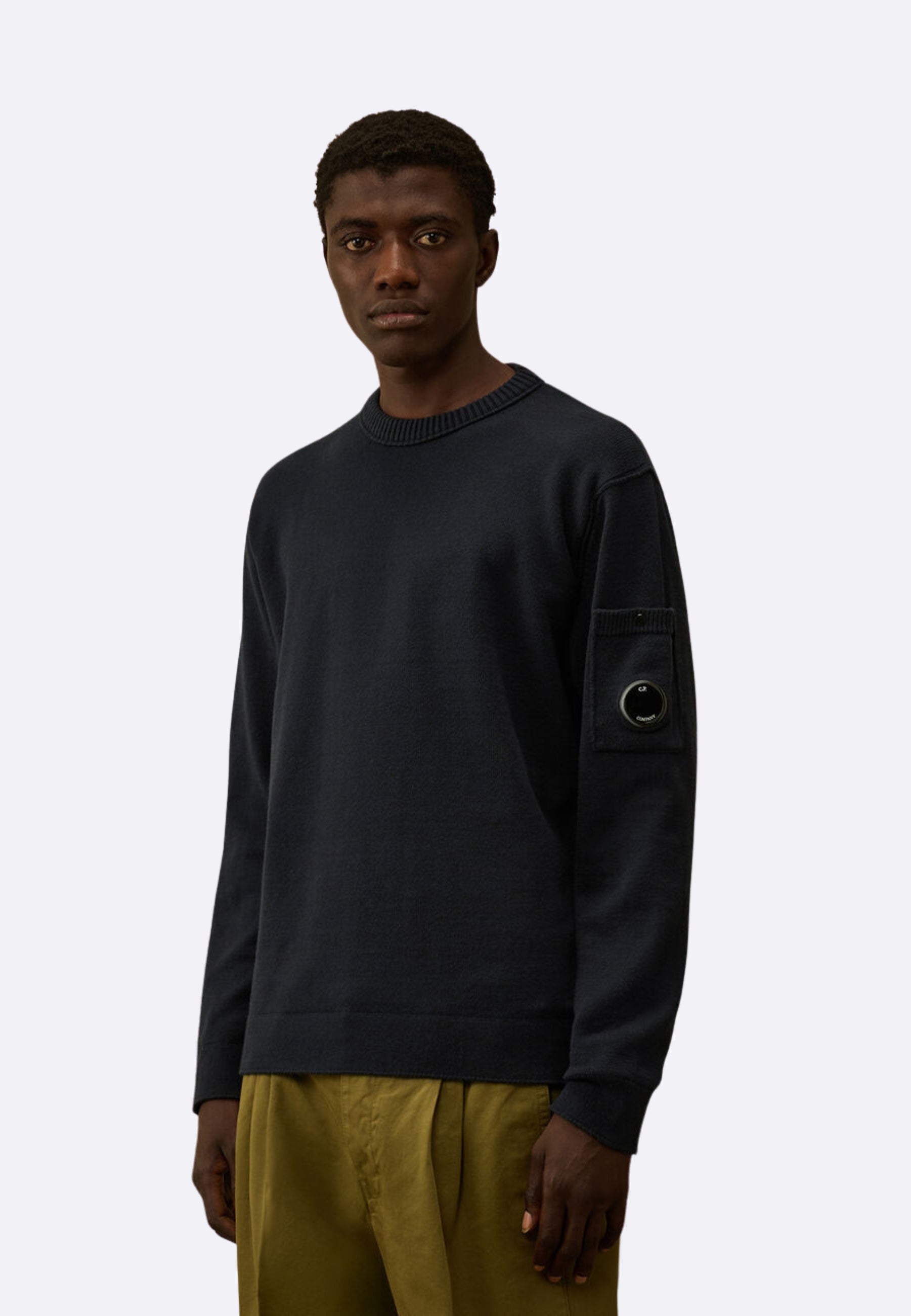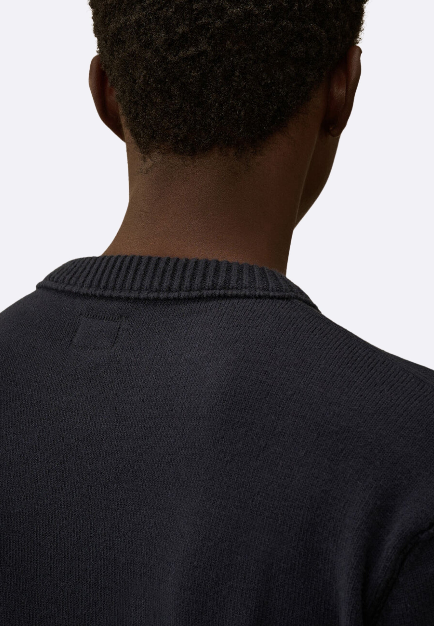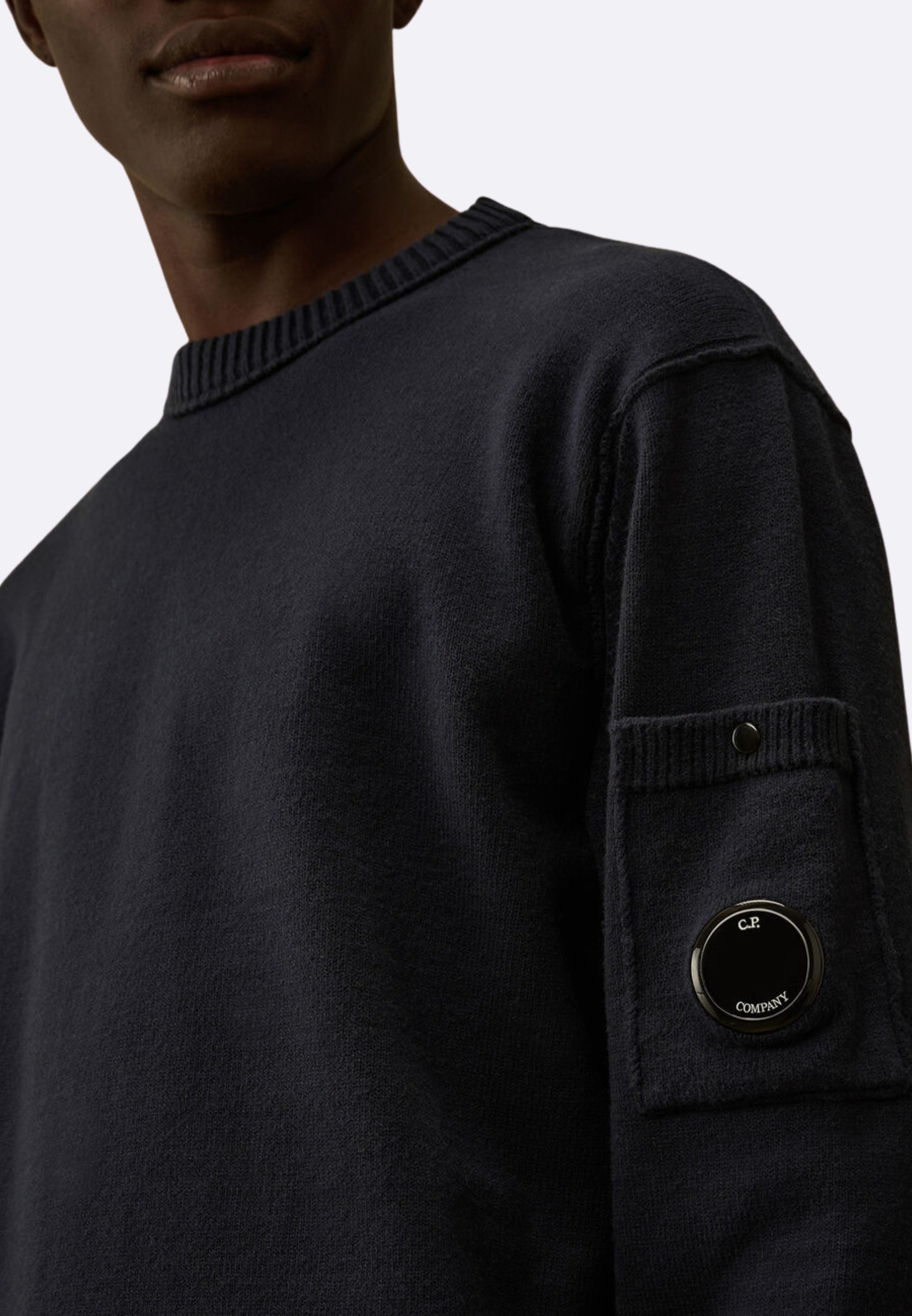 Maglione girocollo realizzato in morbido cotone elasticizzato. Il tessuto garantisce flessibilità e comfort, mantenendo un aspetto raffinato. Il capo presenta l'iconica lente di CP Company e cuciture a contrasto sul giromanica. Finezza 7. Vestibilità regolare.