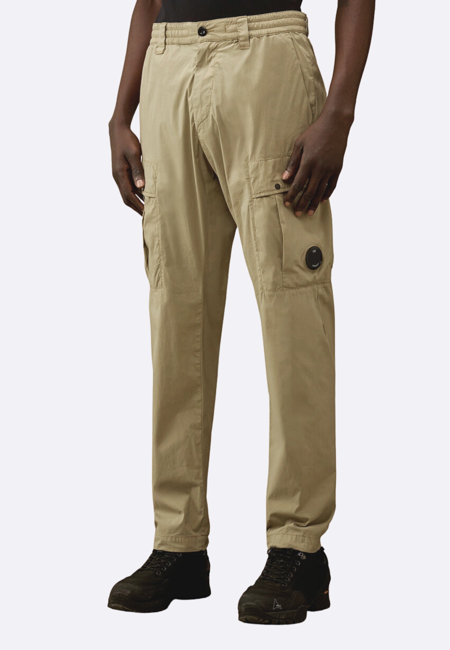Pantaloni cargo realizzati in 50 Fili Stretch, un’evoluzione dell’iconico tessuto in nylon/cotone di C.P. Company, aggiornato con nylon elasticizzato per offrire maggiore comfort e libertà di movimento. Il modello presenta una vita regolabile con coulisse, una chiusura con bottone e zip e passanti per cintura. Il design è completato da tasche laterali, tasche cargo con patta, bottoni automatici e l’iconica Lente di C.P. Company, e una tasca posteriore con bottone automatico ed etichetta con logo applicata. I pantaloni sono tinti in capo per ottenere intensità cromatiche uniche che si esaltano con il tempo e l’utilizzo. Regular fit.