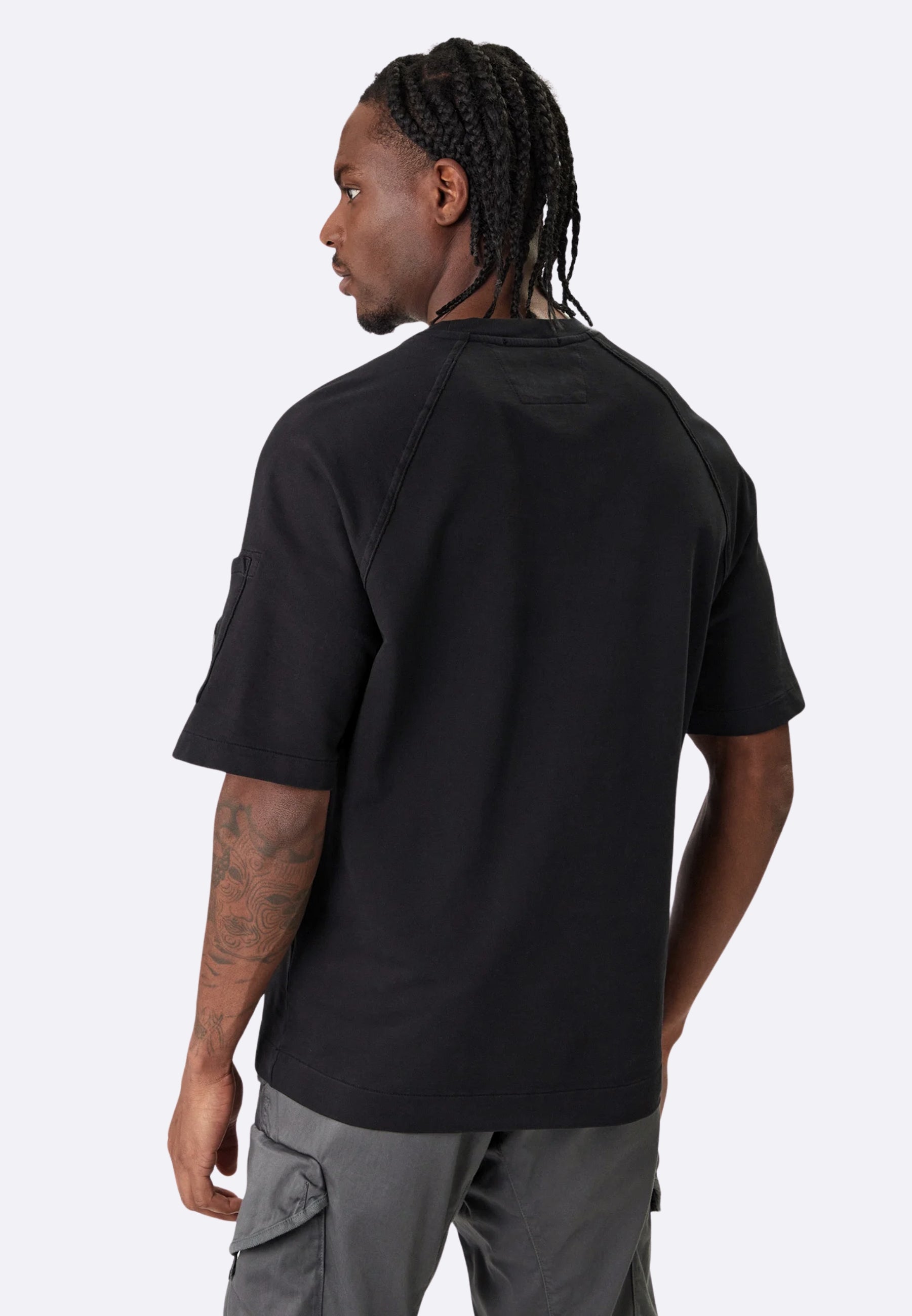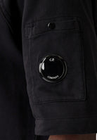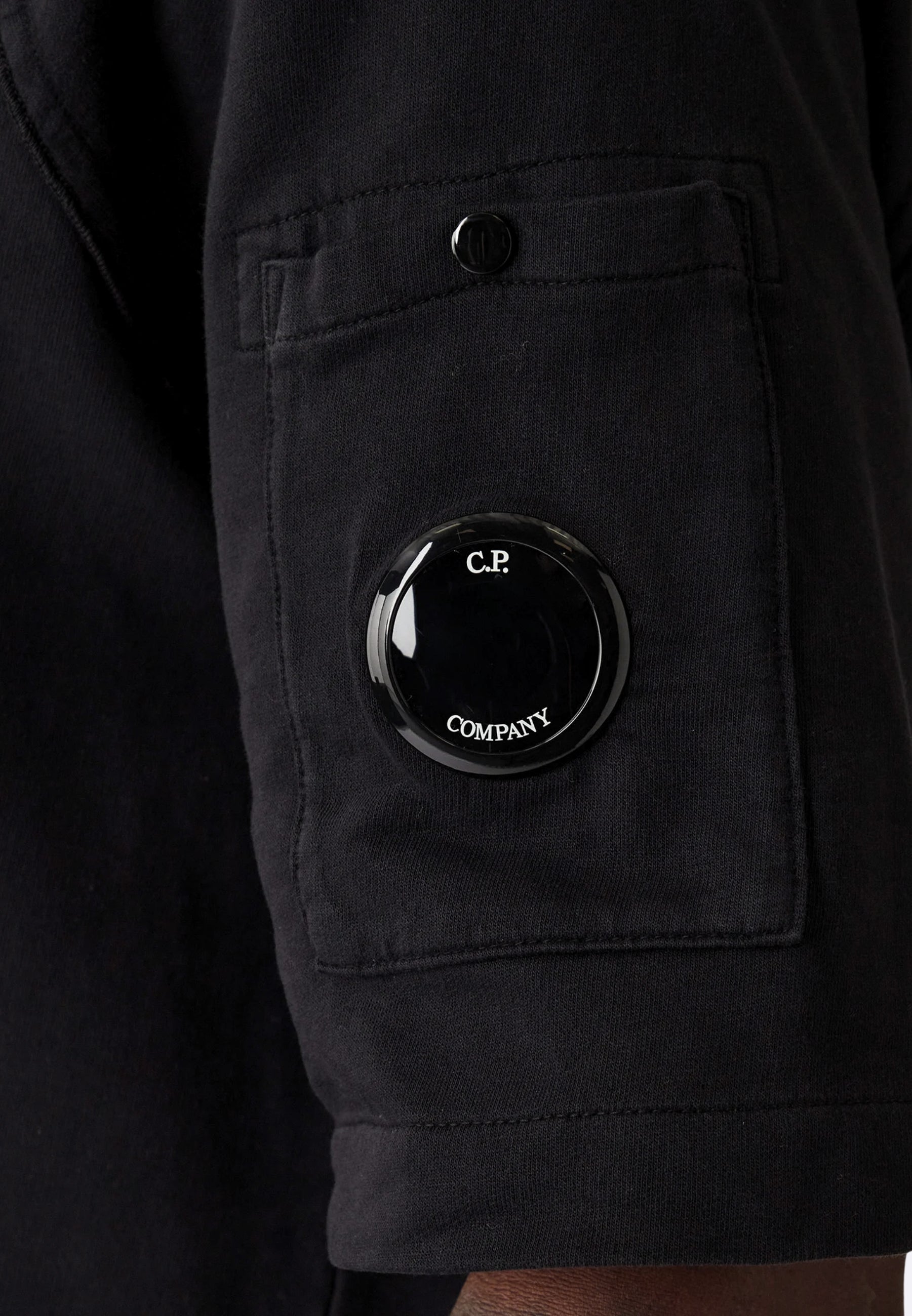 C.P. Company T-shirt Felpa Nera in Light Fleece - Shot Sleeve Sweatshirt