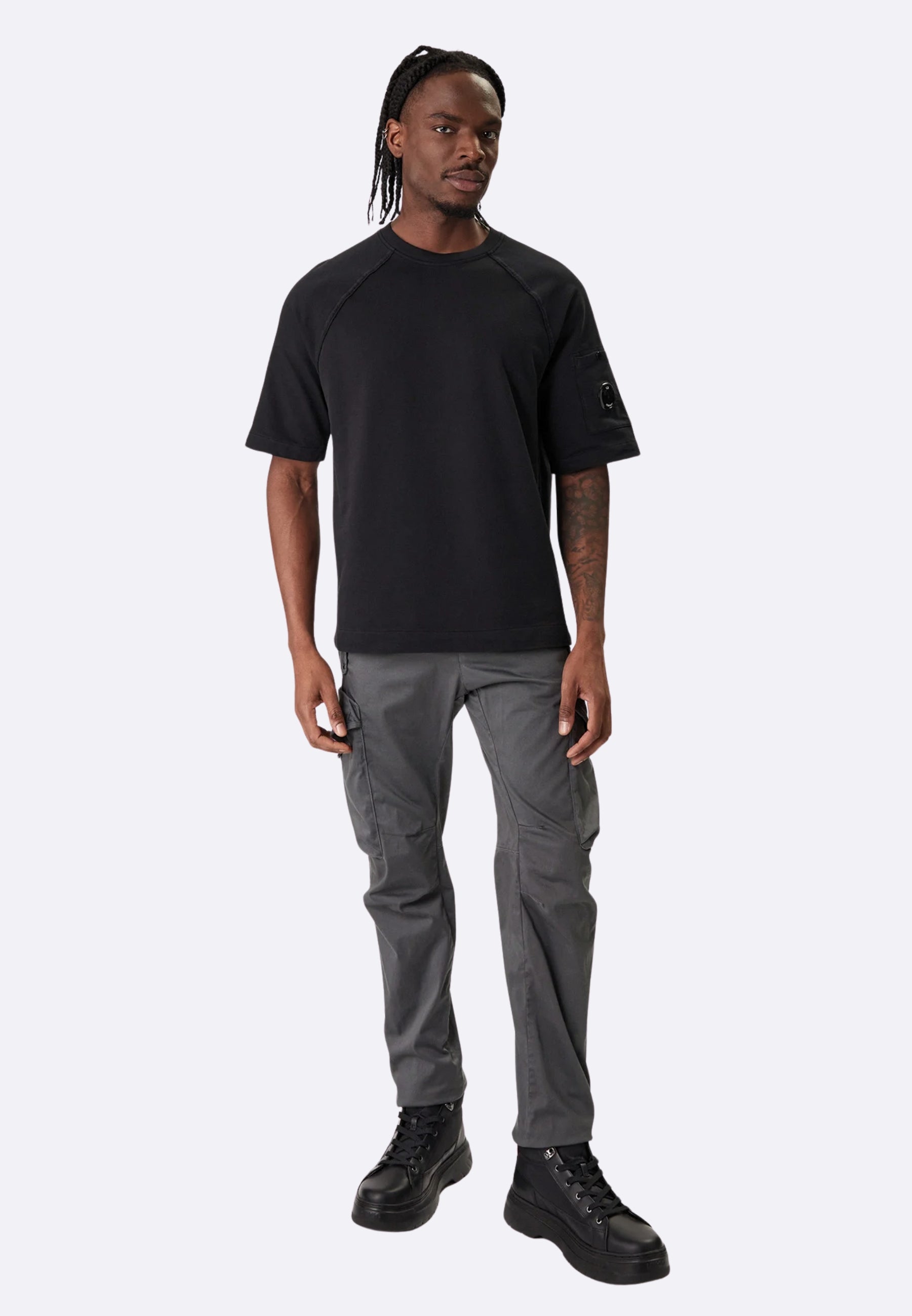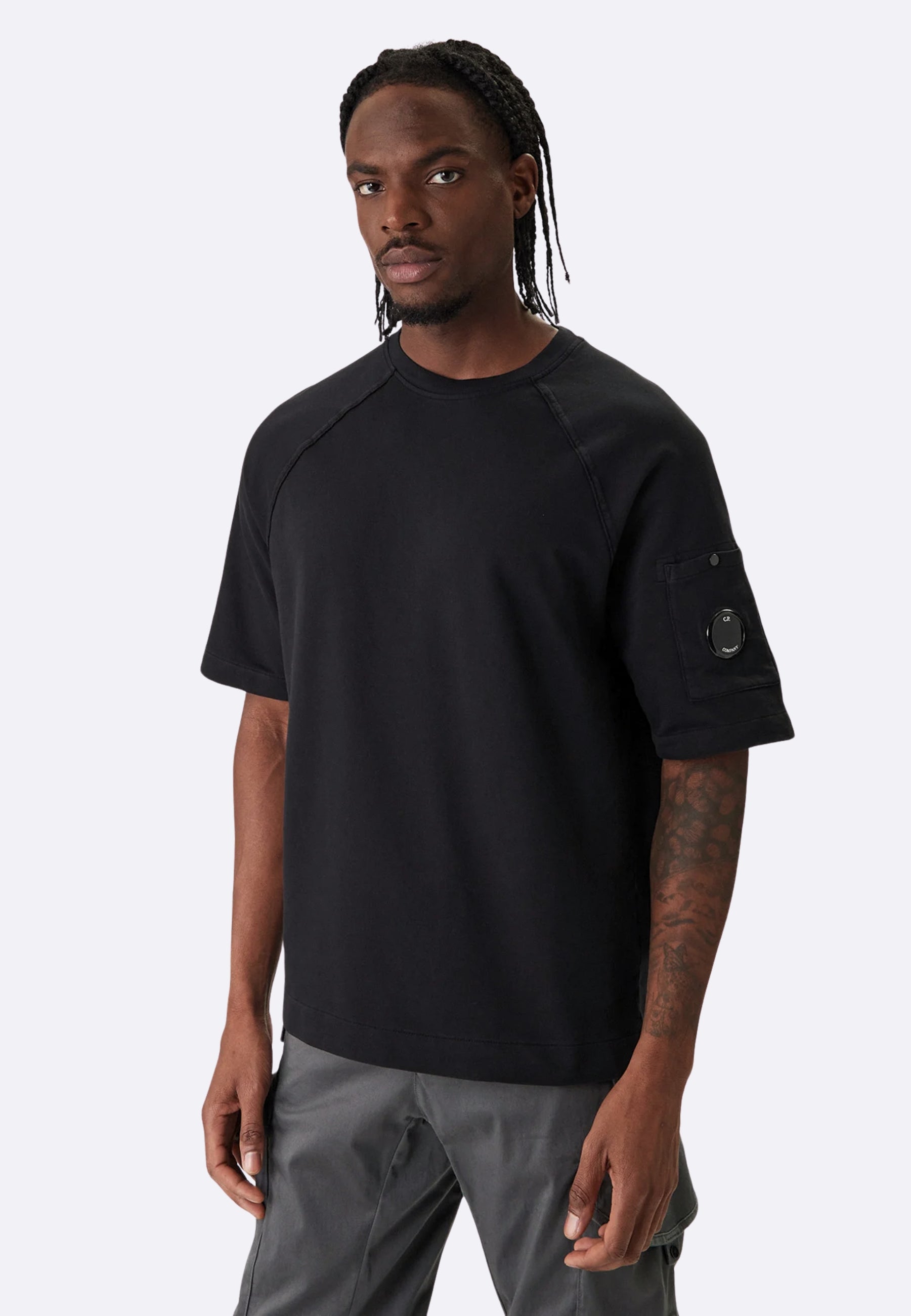 Felpa a maniche corte realizzata in fleece di cotone leggero, un tessuto morbido e traspirante che garantisce comfort quotidiano. Il modello presenta un girocollo a costine, maniche raglan e l’iconica Lente di C.P. Company sulla manica. Tinta in capo per ottenere sfumature di tono e profondità cromatica uniche, che si esaltano con il tempo e l’utilizzo. Made in Italy. Regular fit.