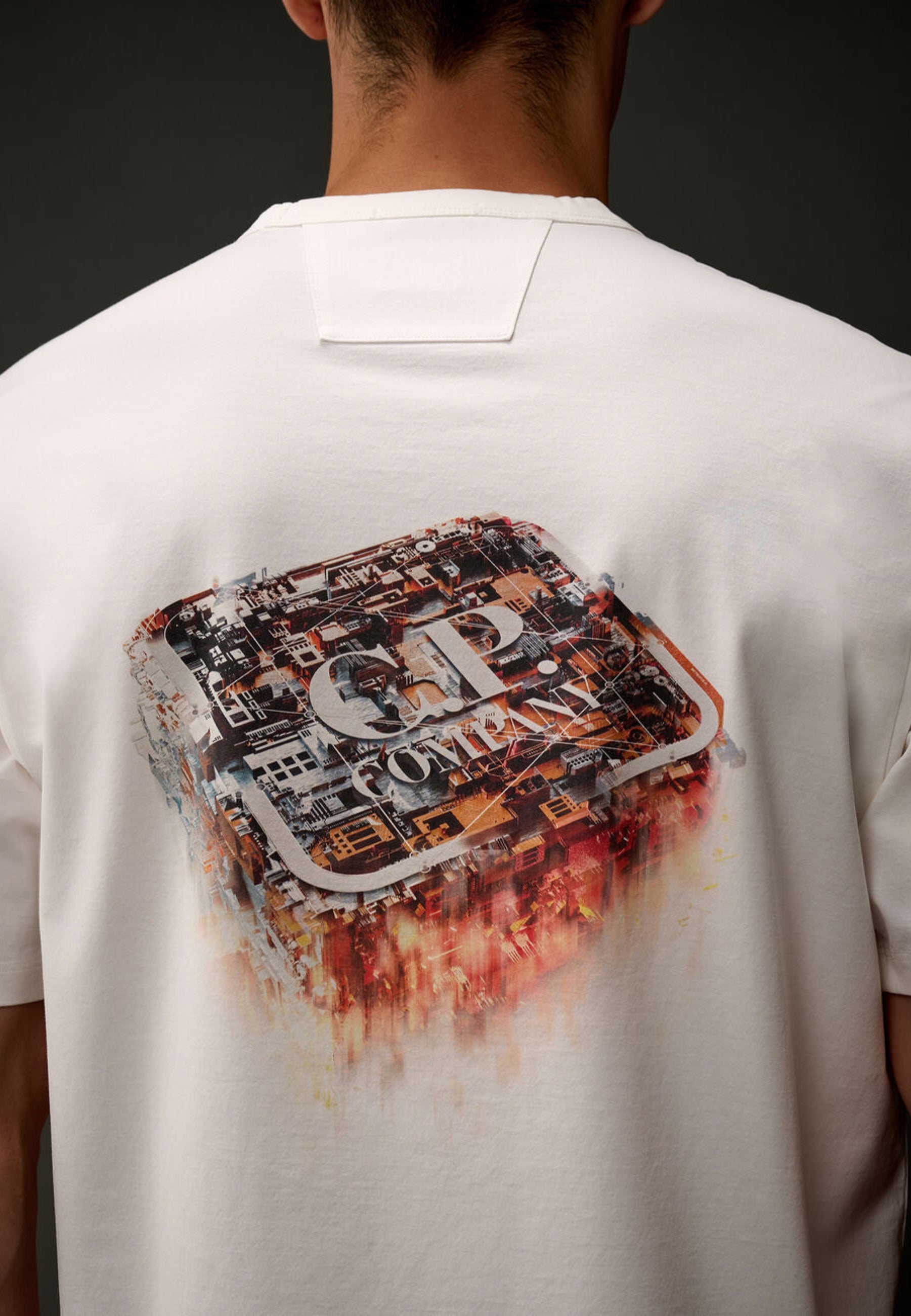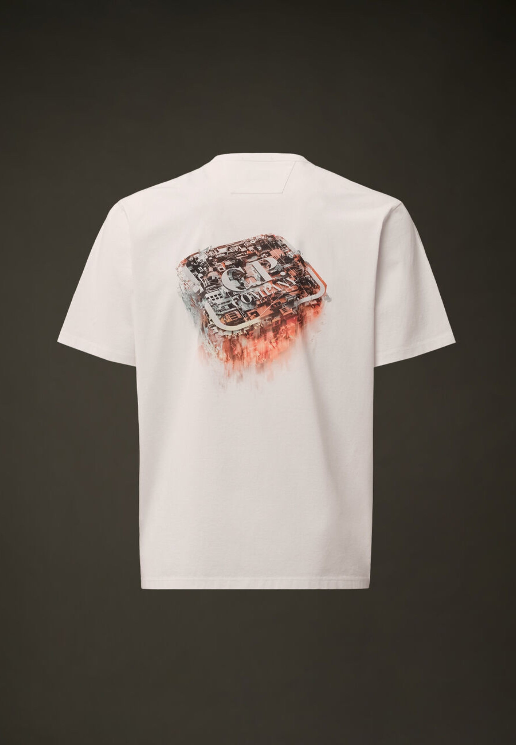 .C.P. Company T-shirt Mercerizzata Bianca Metropolis con Stampa Retro