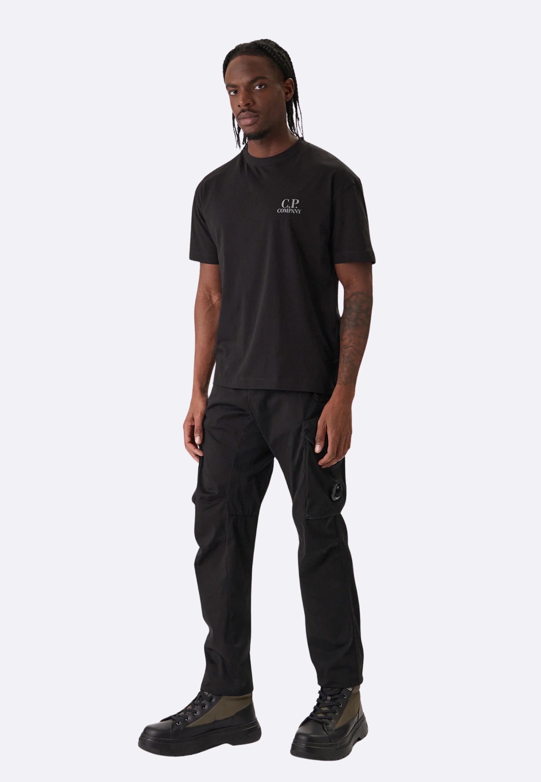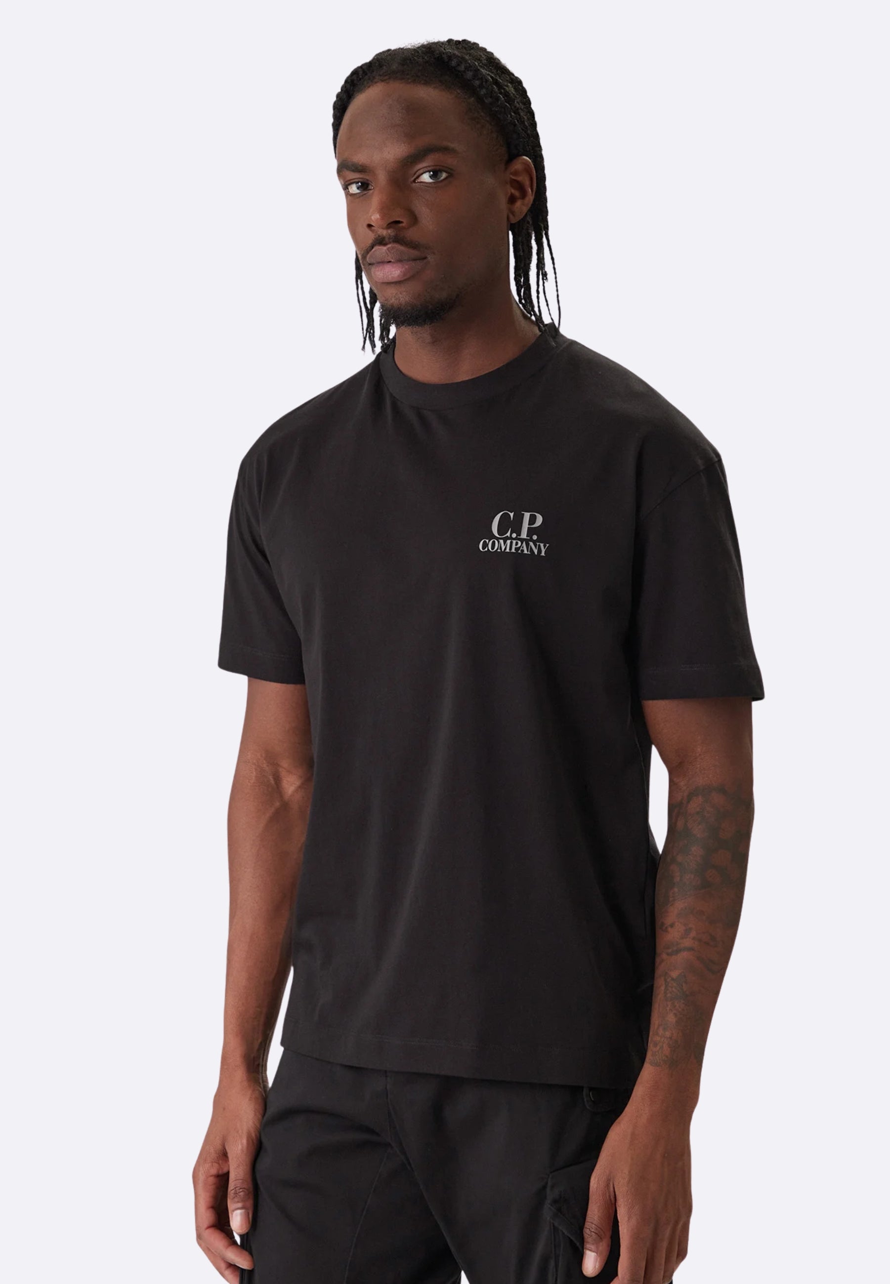 C.P. Company T-shirt Nera con Logo in Jersey - Printed Graphics T-Shirt