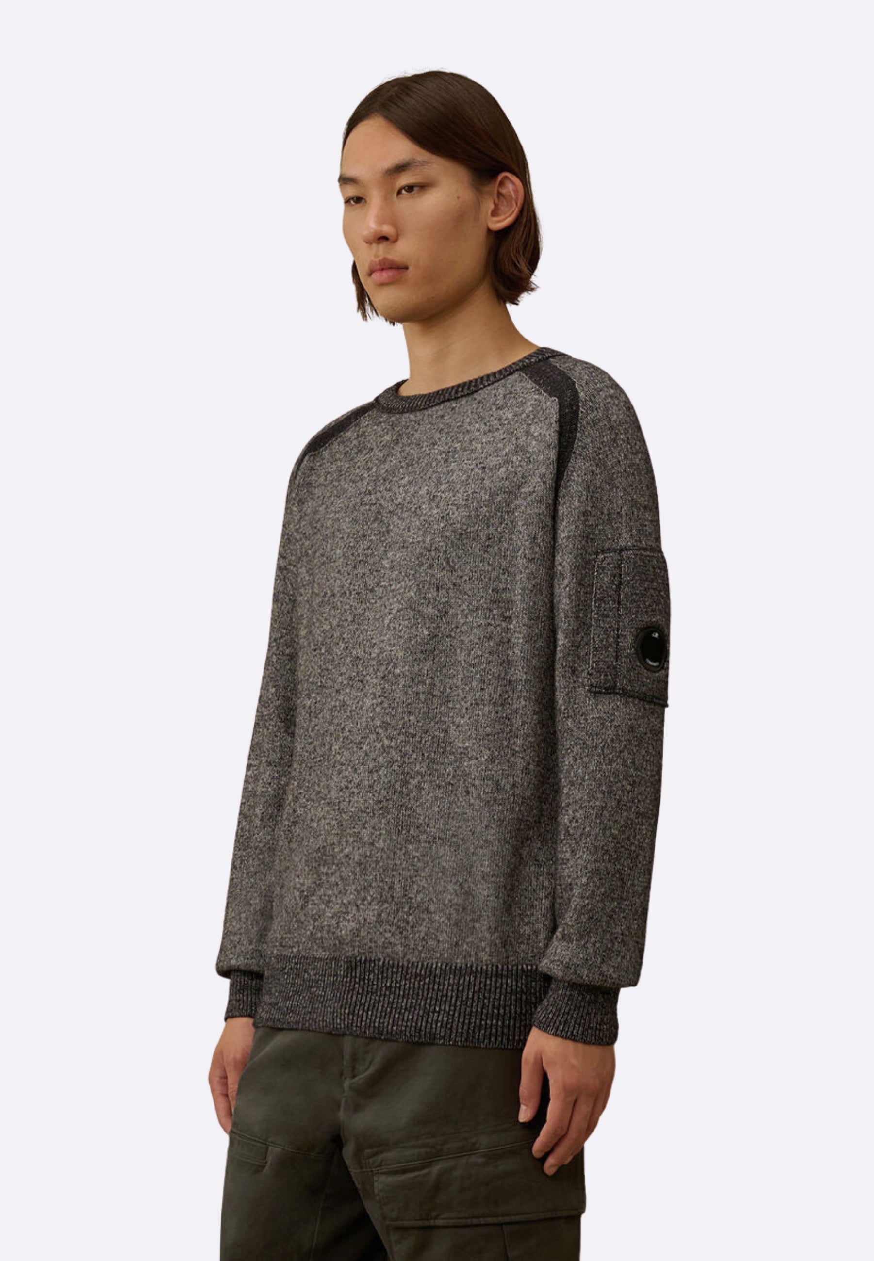 Maglione girocollo realizzato in lana vanisé con ciniglia di poliestere a contrasto. Il modello presenta l’iconica Lente di C.P. Company. Rifinita con polsini e orlo a costine. Finezza 7. Regular fit.