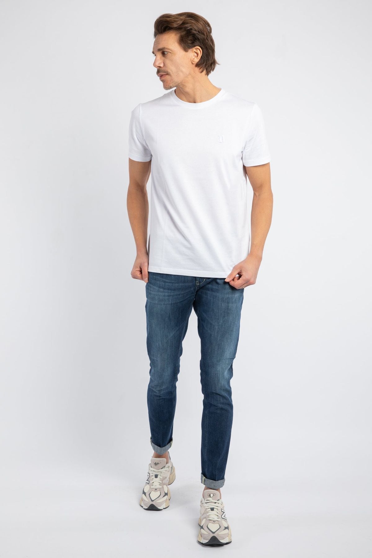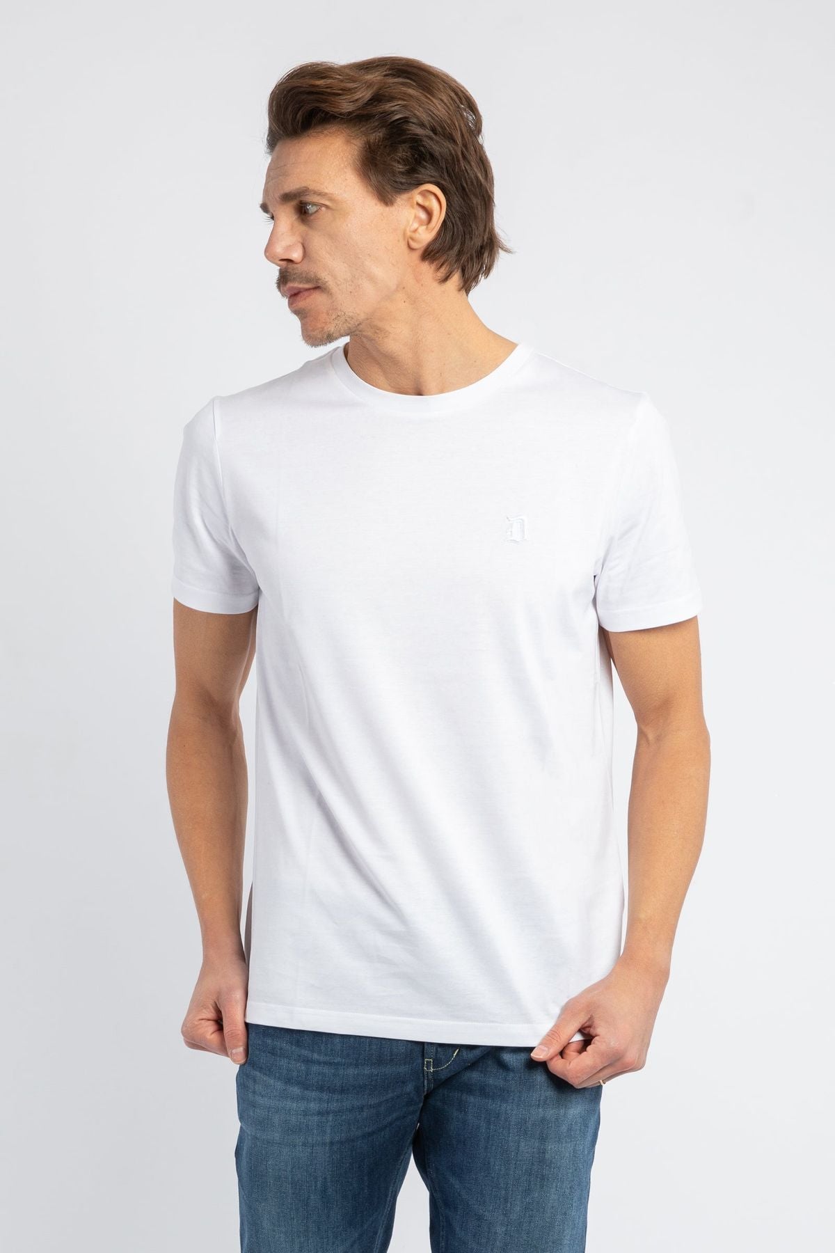 T-shirt girocollo regular a maniche corte con D logo applicata sul petto. Jersey basico. Made in Italy