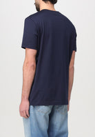 Dondup T-shirt Girocollo Blu con Logo Gommato in Cotone