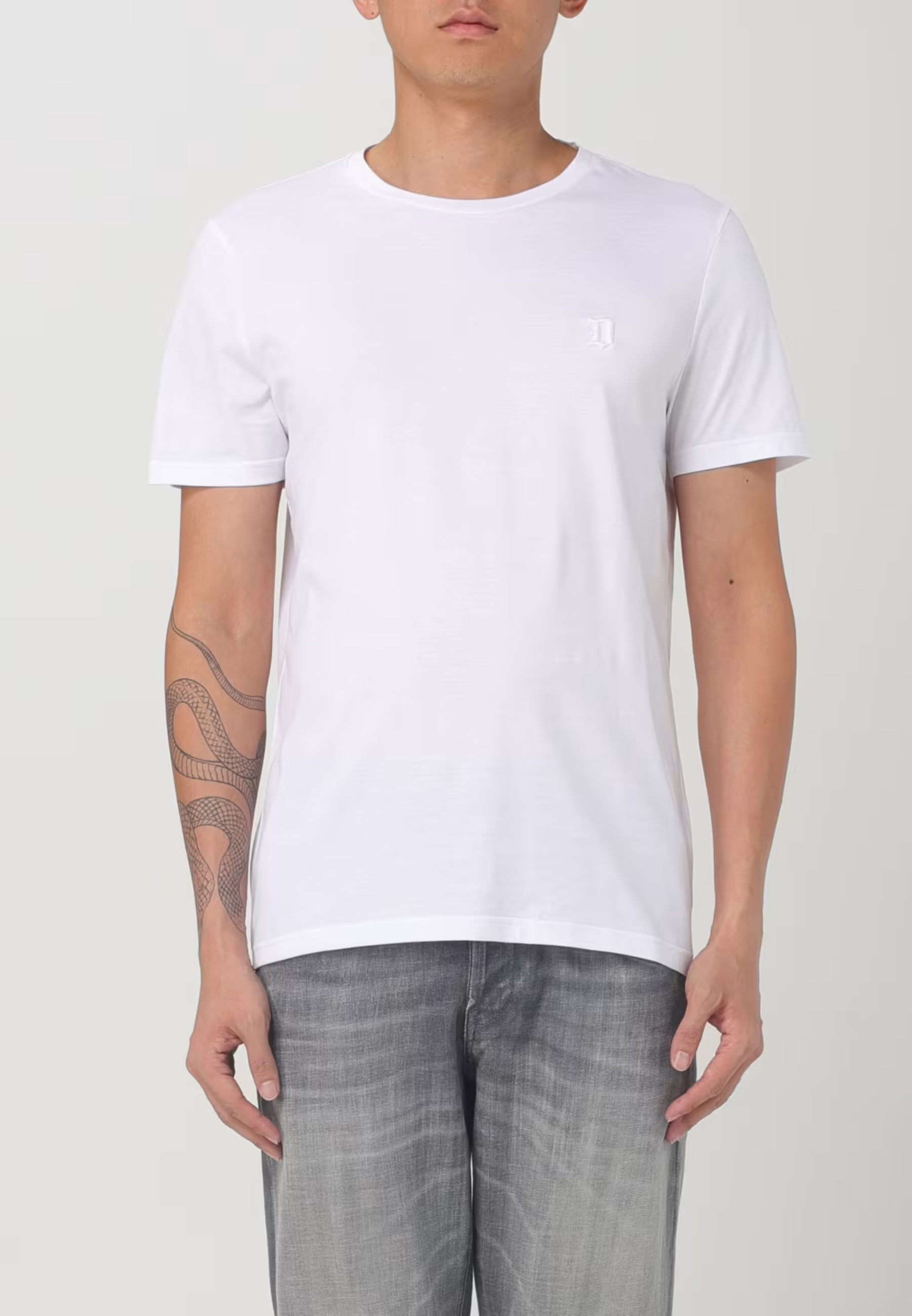 T-shirt girocollo regular a maniche corte con logo ricamato sul petto. Jersey di cotone. Made in Italy