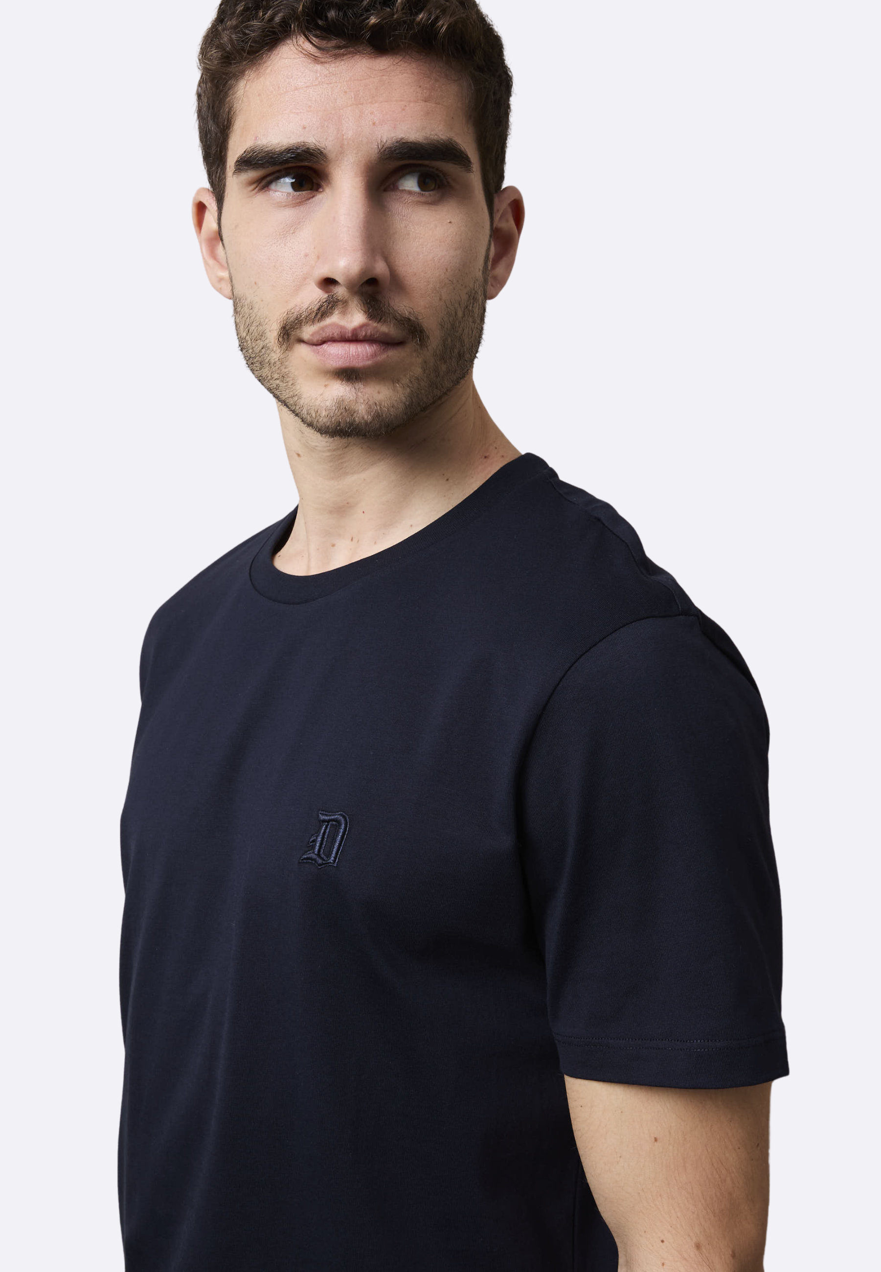 T-shirt girocollo regular a maniche corte con logo ricamato sul petto. Jersey di cotone. Made in Italy