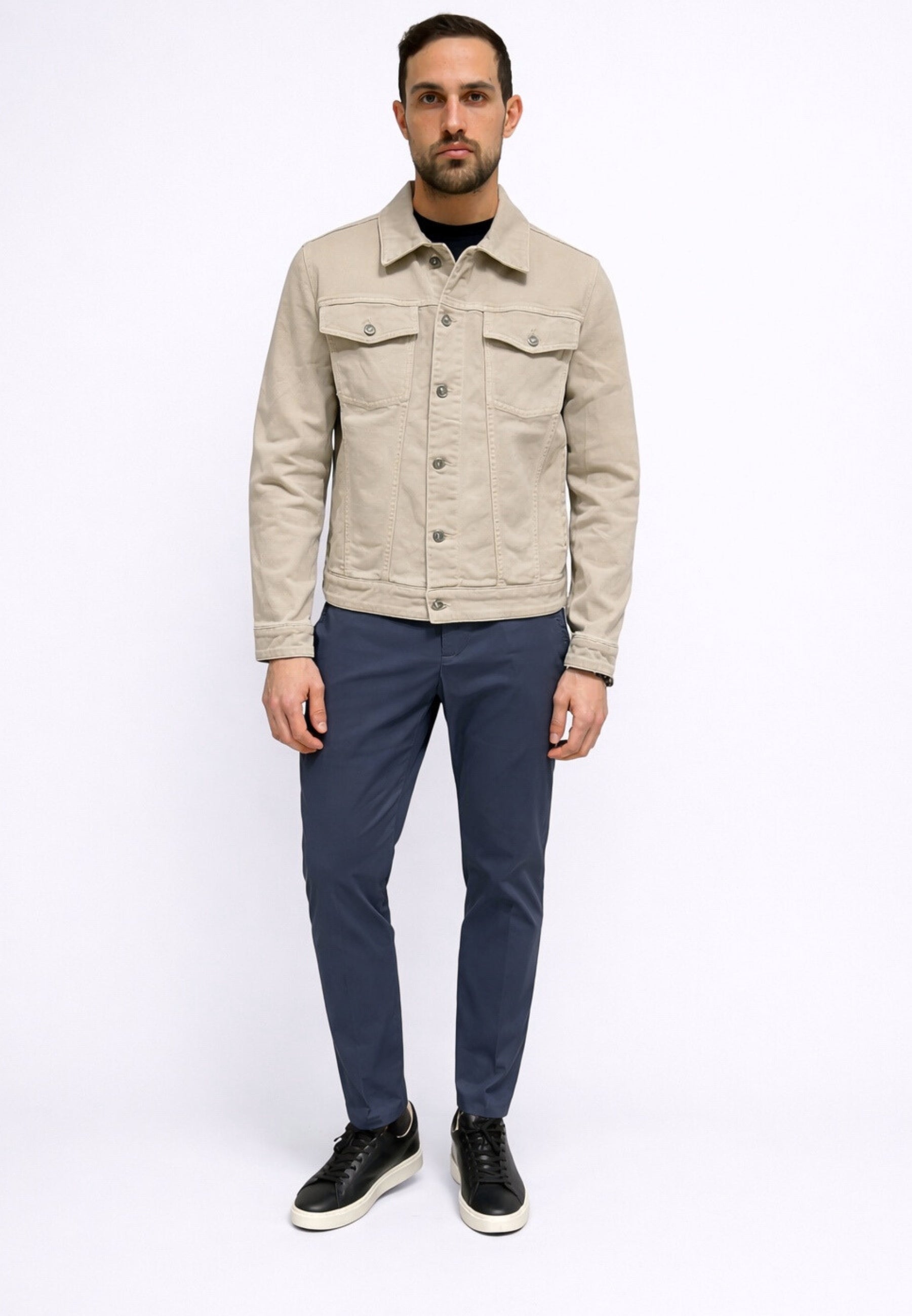 GIUBBINO CINQUE TASCHE REGULAR ALLACCIATO CON BOTTONI CHIODO. DENIM STRETCH 11.50 OZ. LAVAGGIO CHIARO PULITO . LOGO DONDUP. MADE IN ITALY