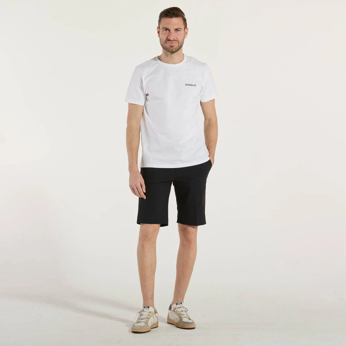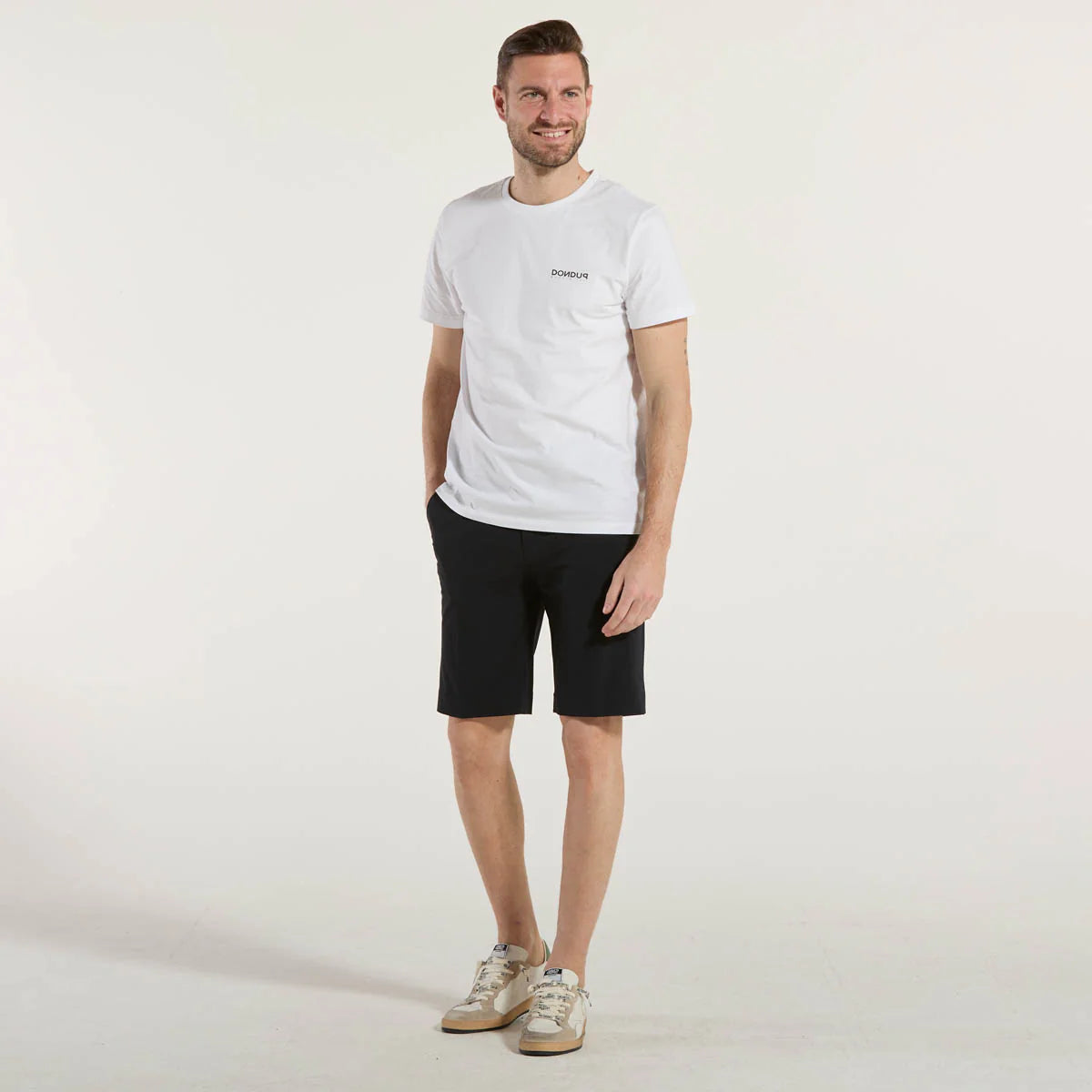 Questi bermuda di lunghezza media sono perfetti nella creazione di un casual look ricercato per l'occasione informale estiva, in alternativa ai chinos lunghi. Il look super opaco del tessuto stretch Surflex®, disponibile in un'ampia gamma di toni distintivi, ne valorizza il design essenziale e contemporaneo, impreziosito dai dettagli di eleganza classica come la cintura a passanti regolata dal bottone in corno, la pattina che dissimula la zip e le tasche laterali alla francese. La cintura e la bottoniera interna sono impreziosite dalla stampa dell'esclusivo monogram Razzle Dazzle tono su tono. Le tasche posteriori a filetto aggiungono una nota di eleganza, impreziosite dall'inconfondibile logo a microiniezione nero, nel completare un capo passepartout leggerissimo, che garantisce stile, freschezza e comfort anche nelle giornate più calde.