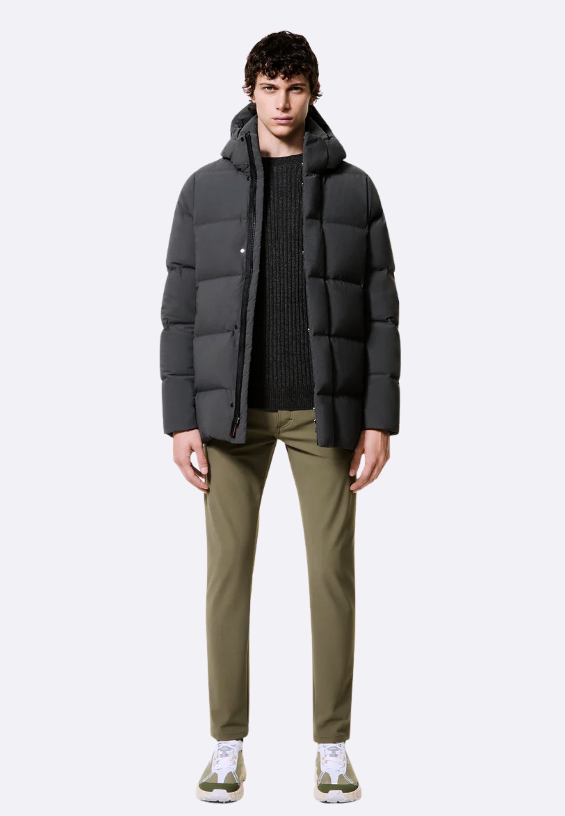 Il pattern nitido dei canali tubici caratterizza il design contemporaneo e minimalista di questo piumino caldo e protettivo. Il capospalla offre la protezione del cappuccio staccabile tramite zip nascosta e il calore dell'imbottitura in morbida piuma d'anatra 90/10. La totale assenza di impunture dei canali tubici previene la sua fuoriuscita. Il look super opaco dell'esterno nell'esclusivo tessuto stretch SURFLEX® e la patta abbottonata a pressione, che nasconde la zip a doppio cursore metallico del davanti, enfatizzano la pulizia visuale del design. Le tasche laterali sono pratiche e capienti, chiuse da zip invisibili. L'interno è completato dal taschino a zip invisibile, ravvivato dal doppio filetto arancione fluo, accanto alla tag a cuore "Made with love, designed in Tuscany". Il logo a microiniezione nero sulla manica sinistra completa questa giacca morbida, confortevole e a prova d'inverno, disponibile nelle tonalità di stagione.