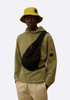 La borsa C.P. Company con dettaglio lenti è realizzata in nylon B, un nylon multifilamento tinto in pezza con trama satinata.
