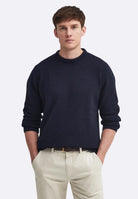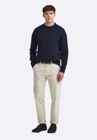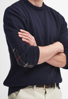 Barbour Maglione Holden Girocollo Blu con Toppa su Gomito