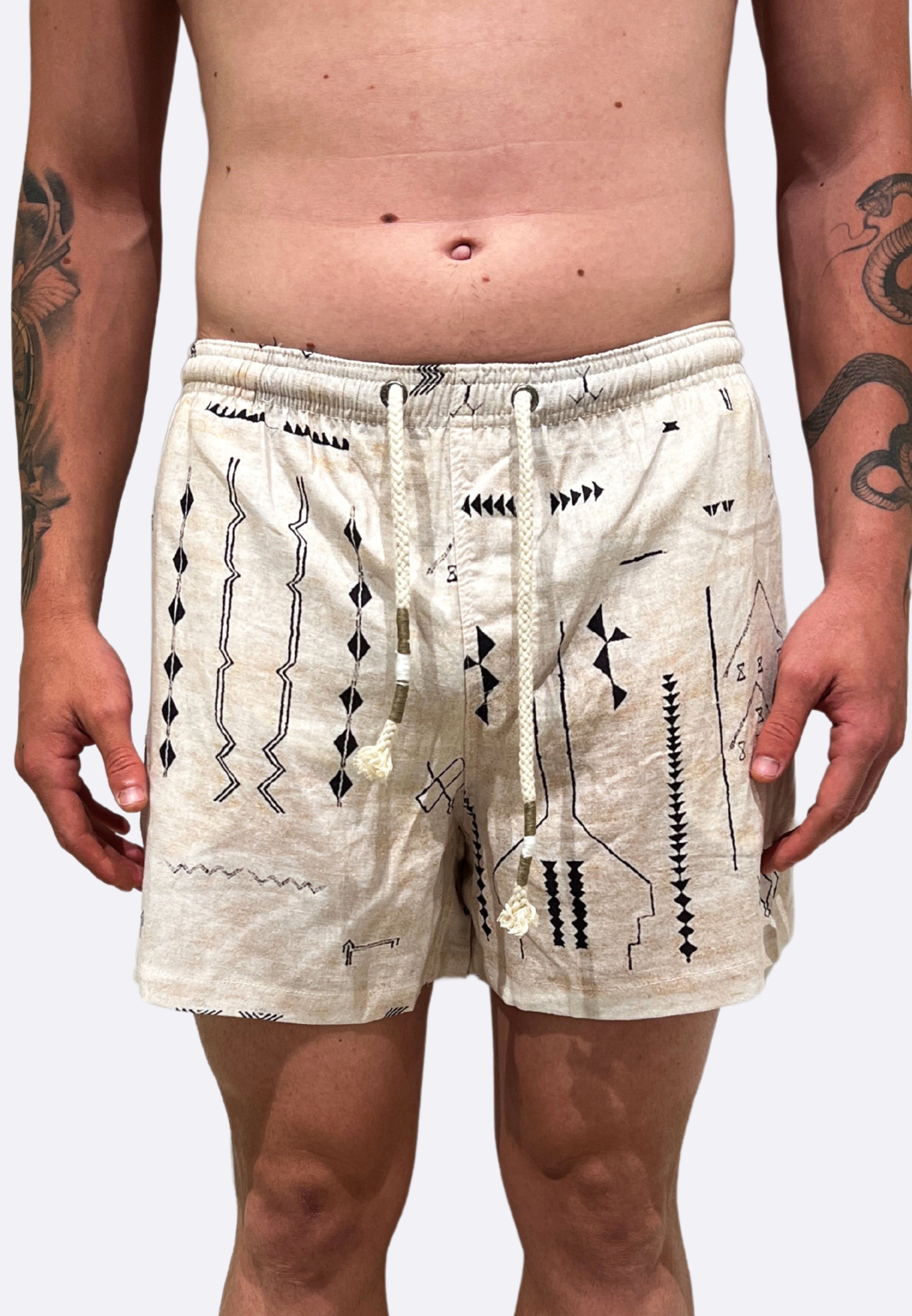 Tooco Bermuda Beige Patterned Linen Costume
