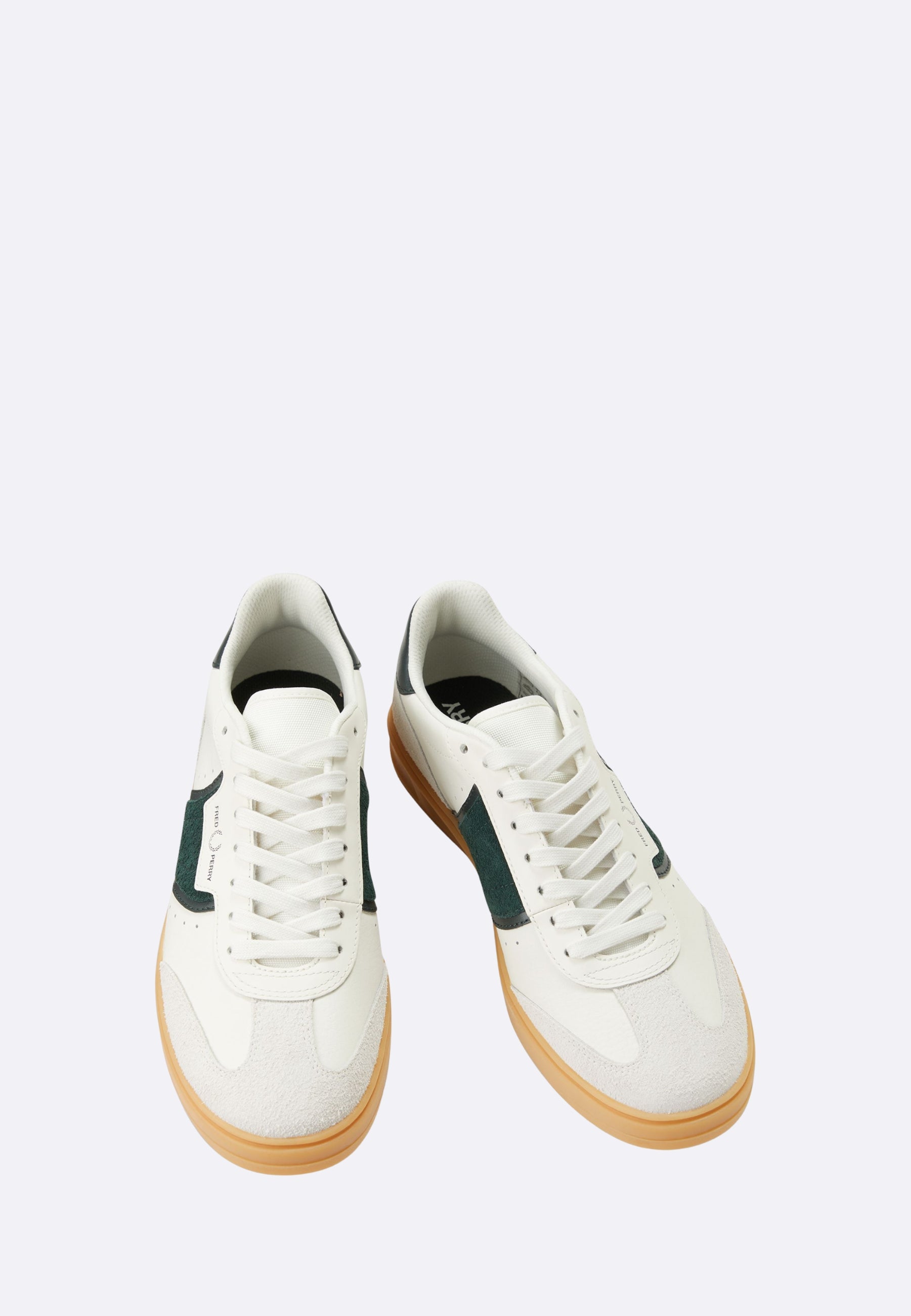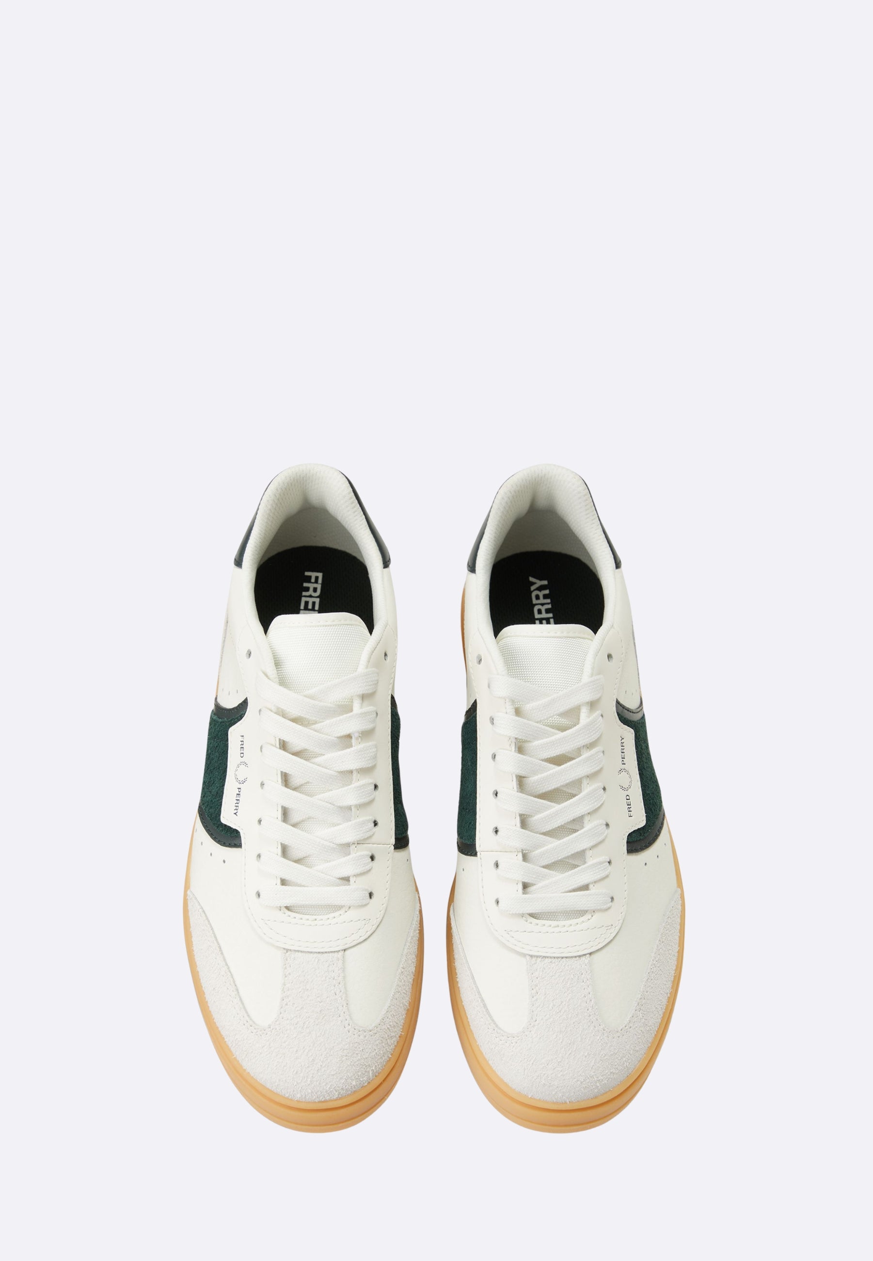 Fred Perry White Suede Sneakers with Green Inserts - B2323