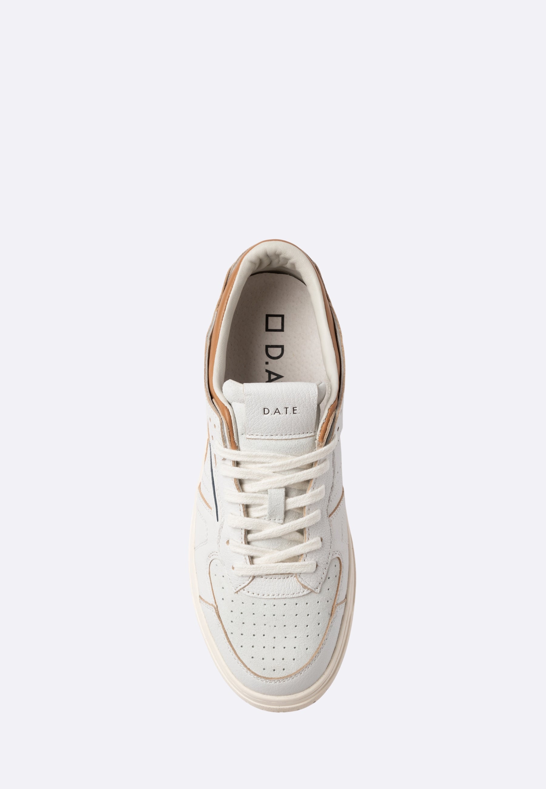 The hammered leather label with the DATE logo is sewn onto the tongue.