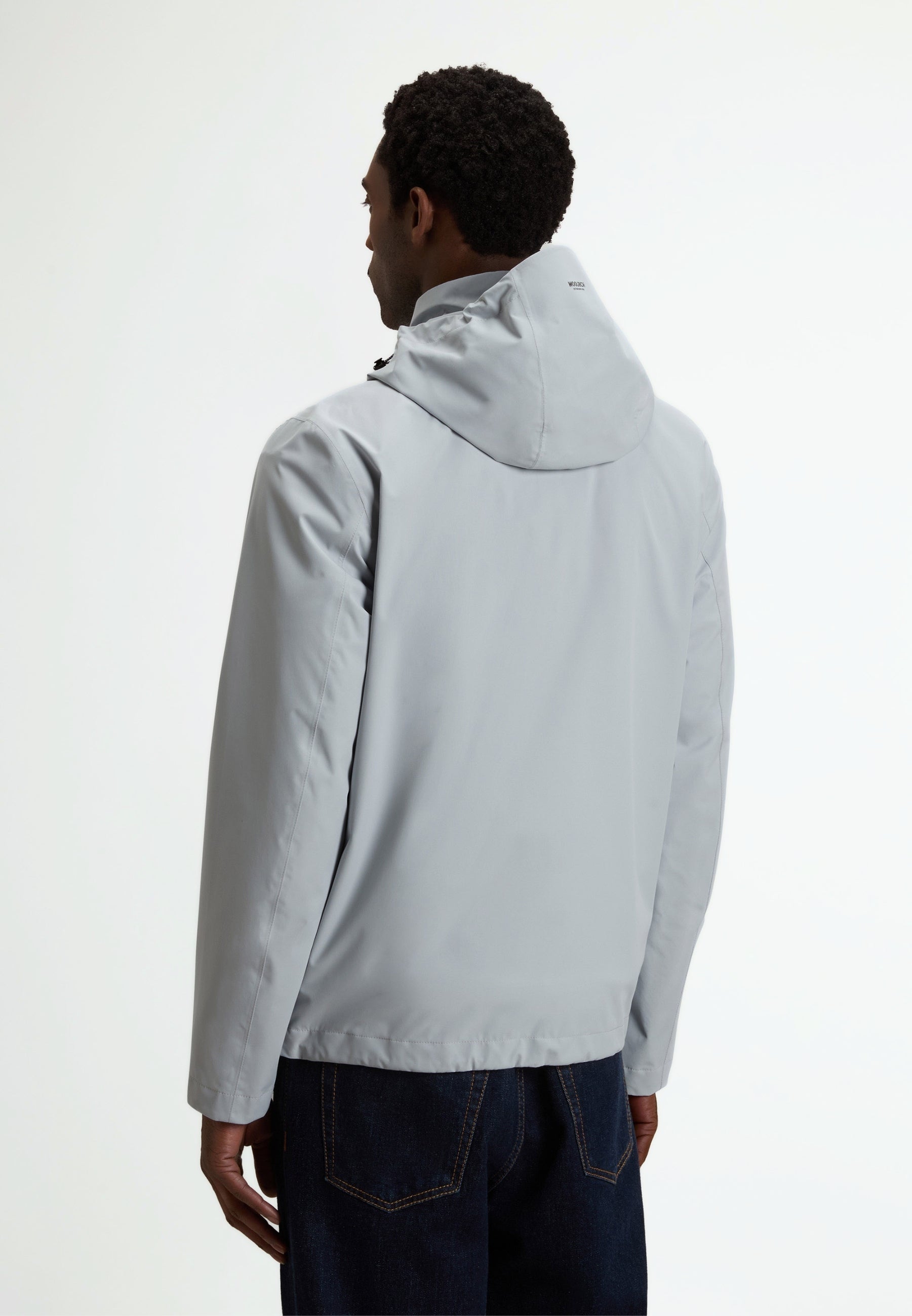 This jacket is made of two-layer fabric, a lightweight material that's water-resistant, windproof, and breathable. The seams are partially taped for extra protection in the most exposed areas. The adjustable hood adds practicality on changeable days, while the two-way zip and zip pockets ensure ease of use. Adjustable cuffs and hem allow you to customize the fit to your daily needs, and an internal pocket keeps essentials safe. A functional and versatile piece, perfect for transitional weather.