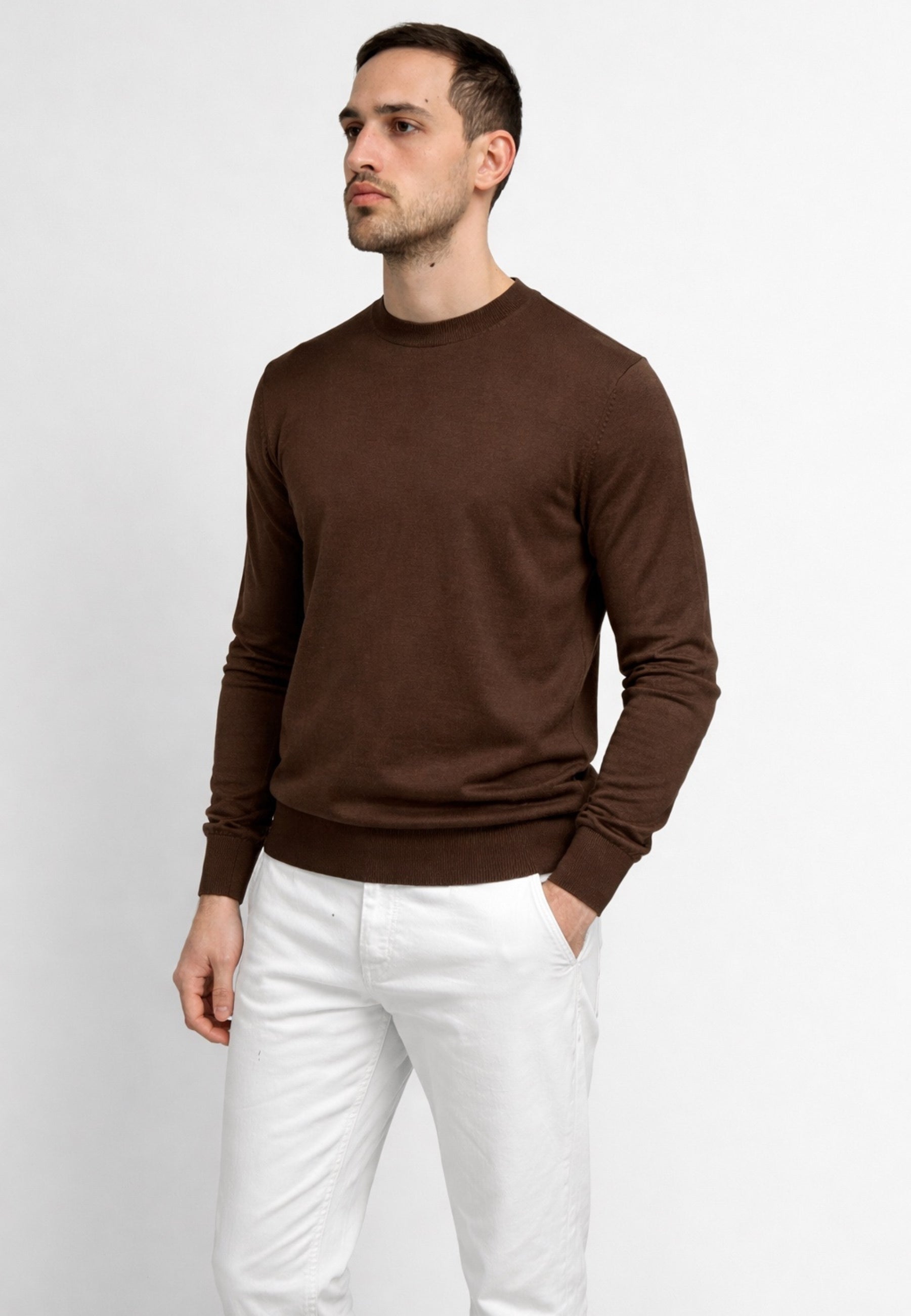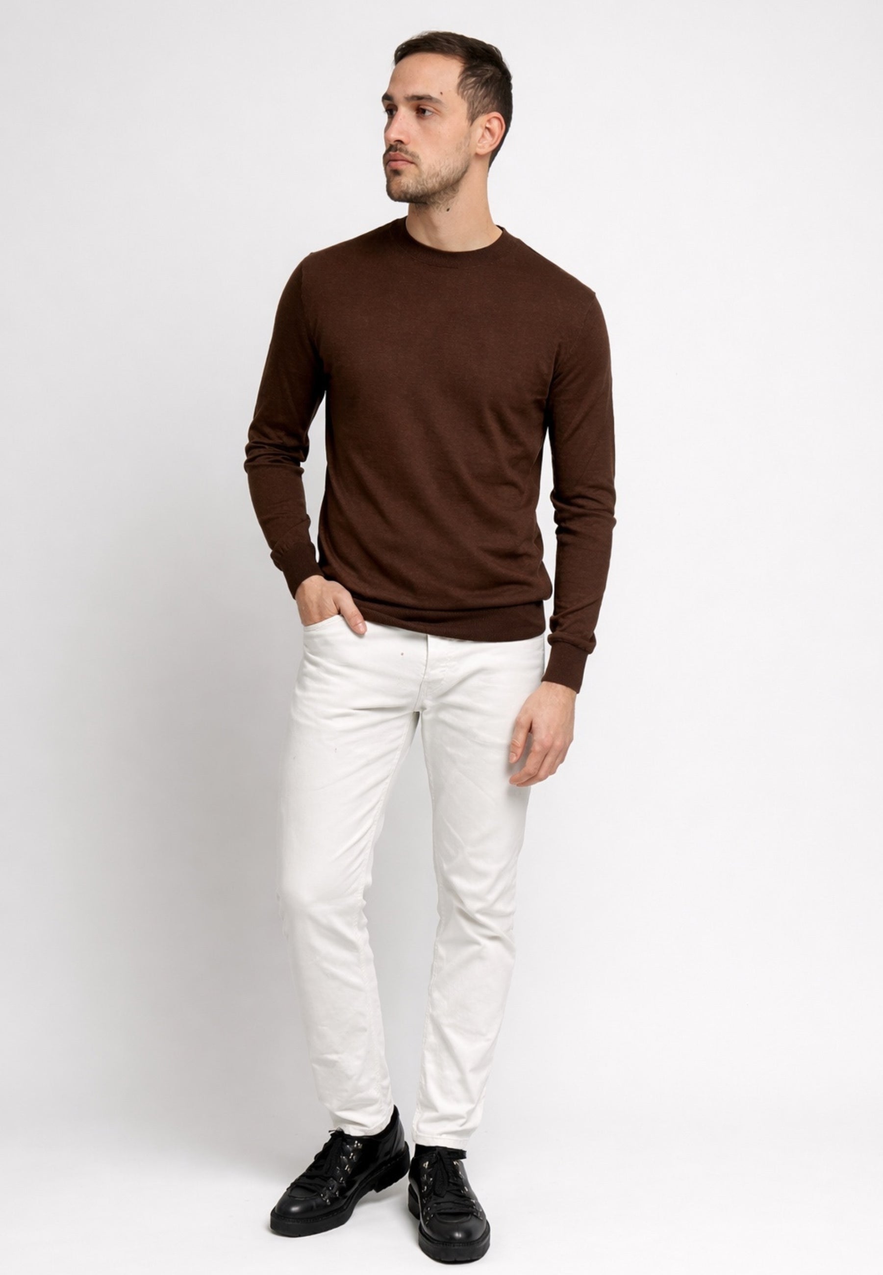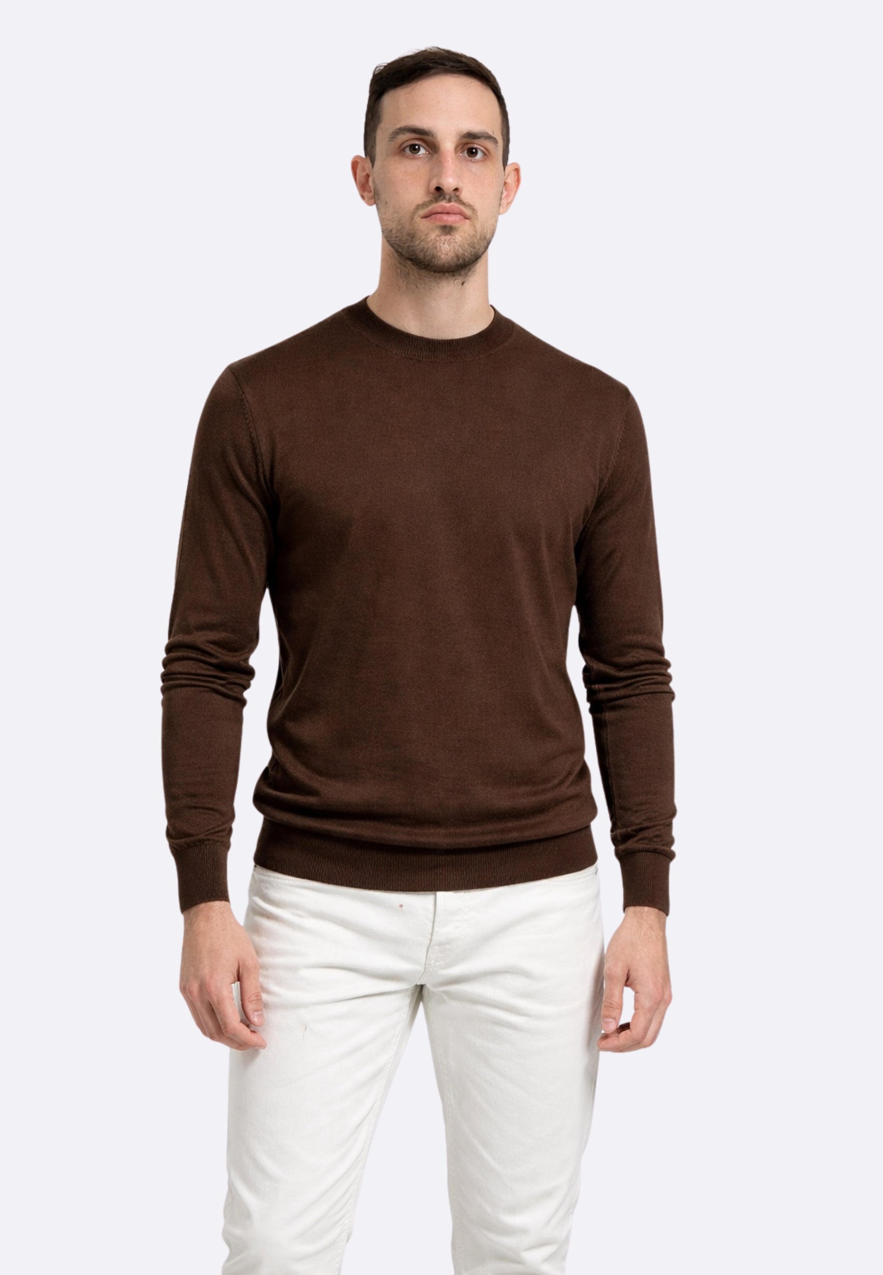 Brown Crew Neck Sweater Outfit in 16 Gauge Wool