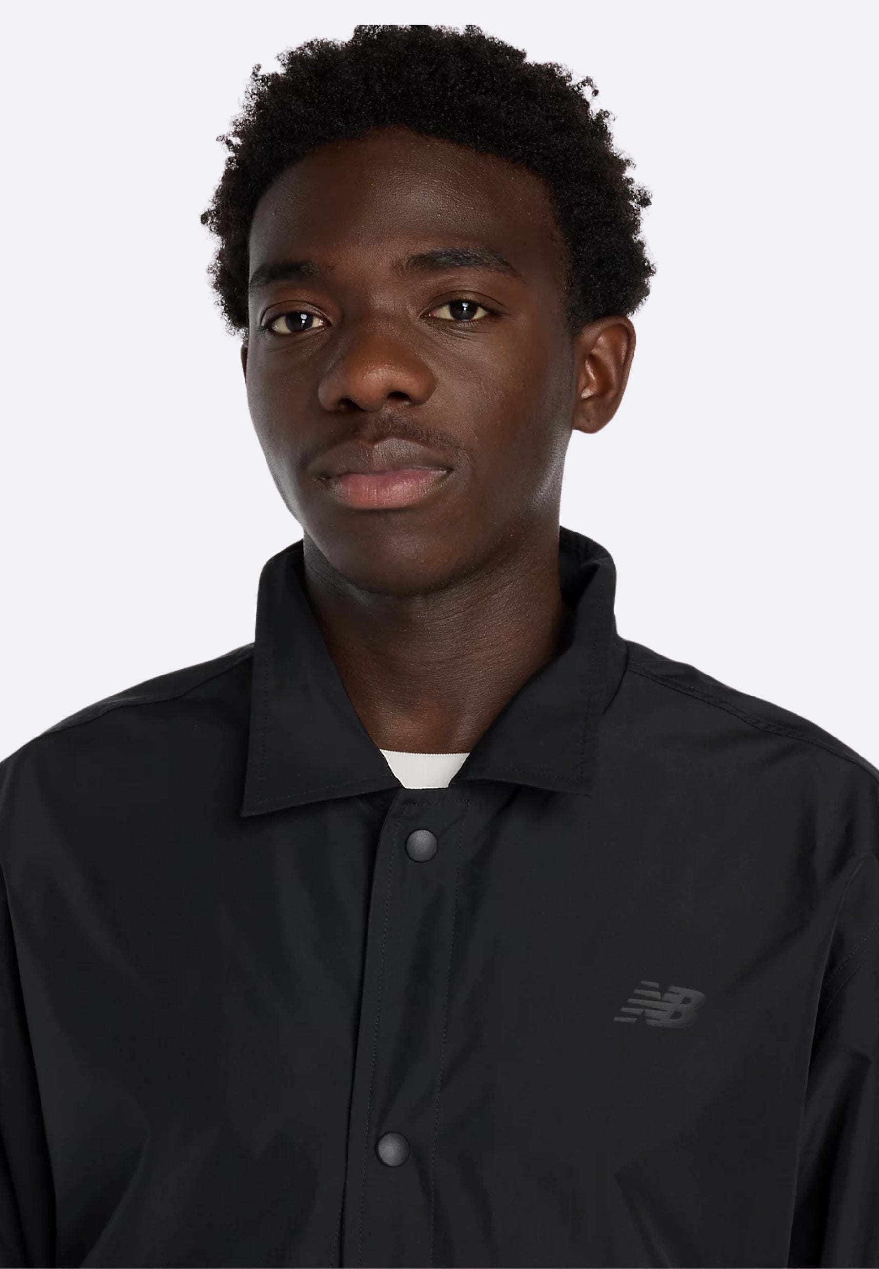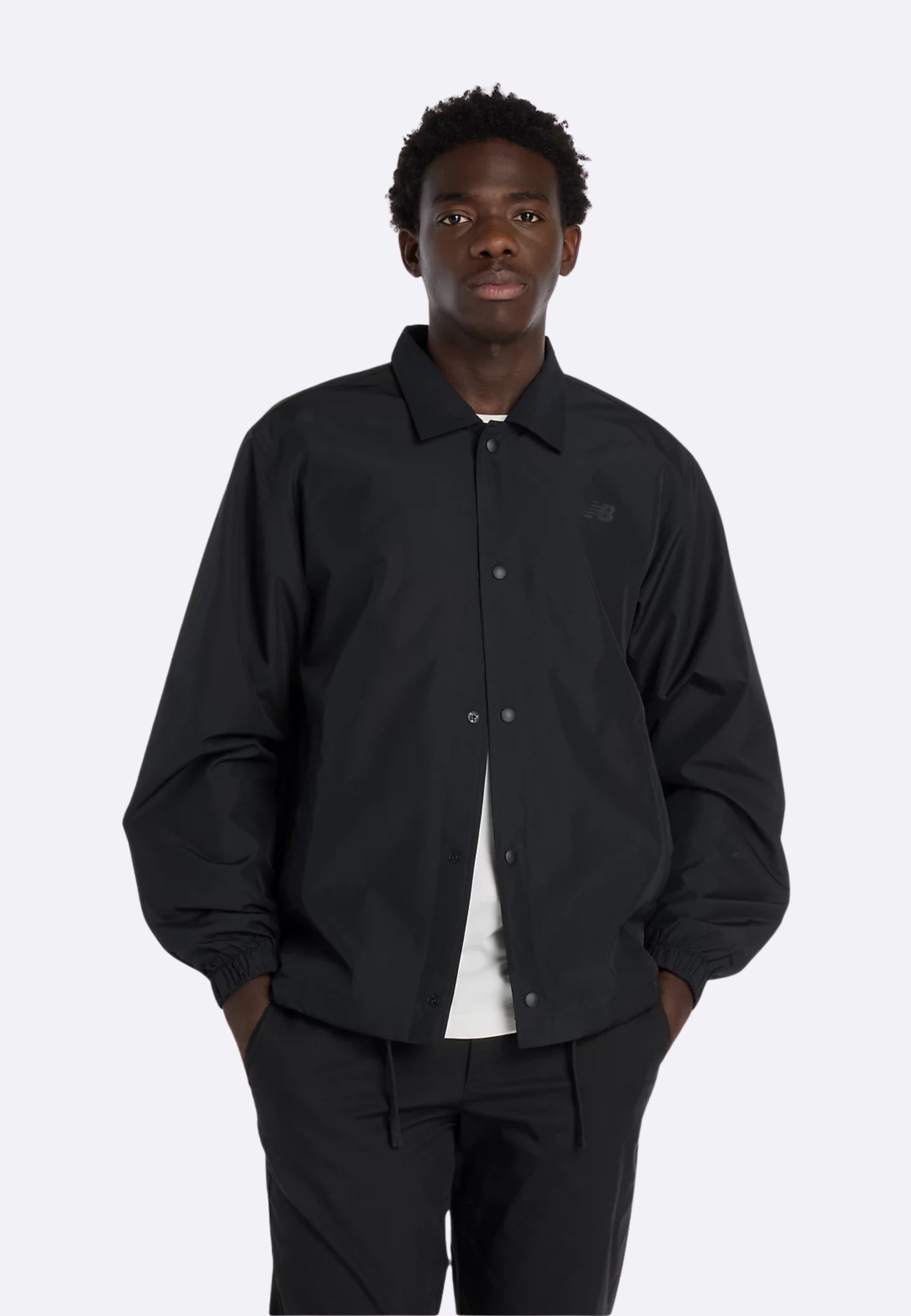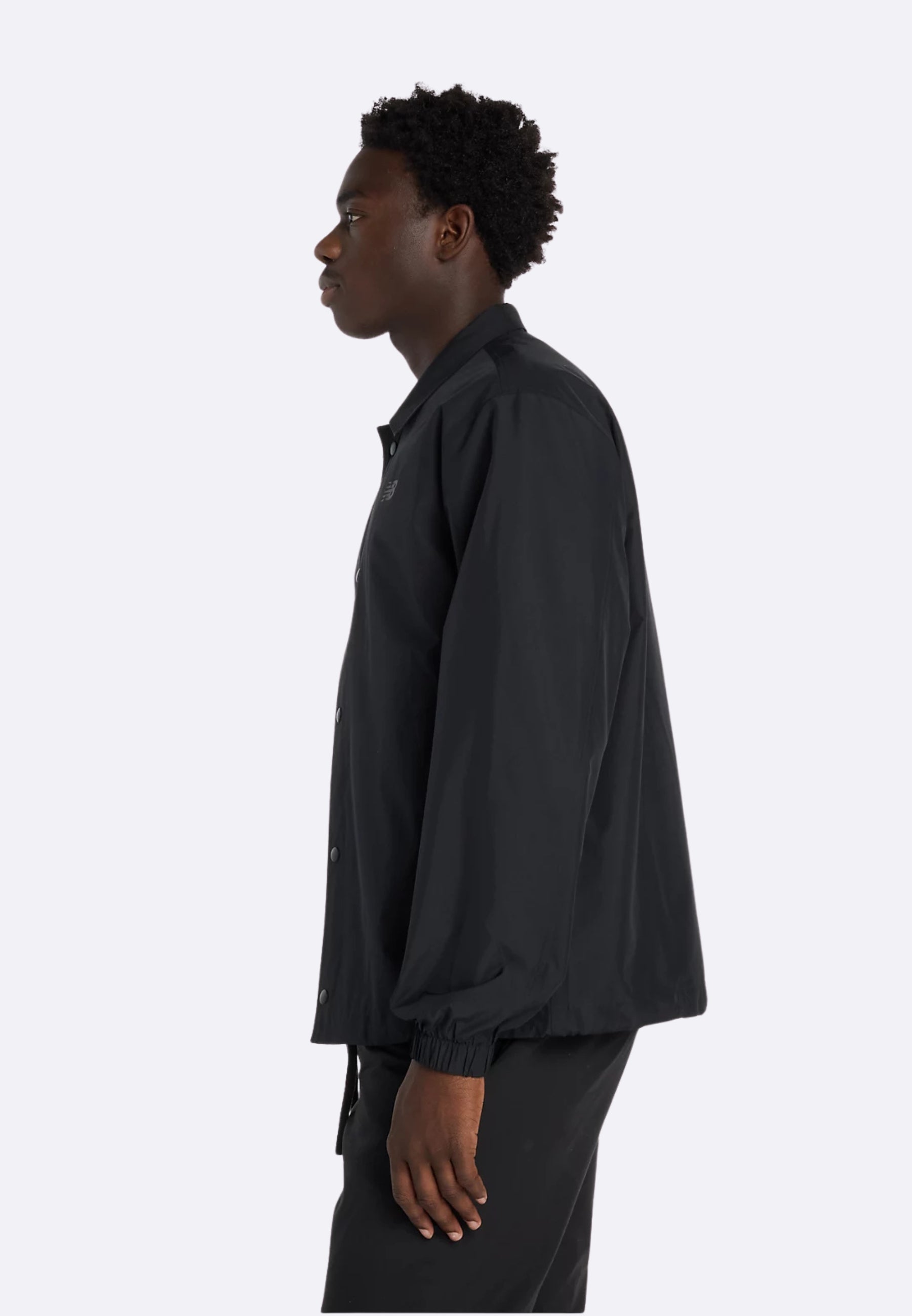 New Balance Lightweight Coaches Jacket in black with buttons