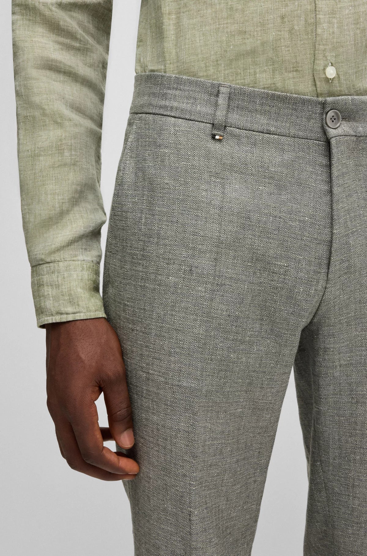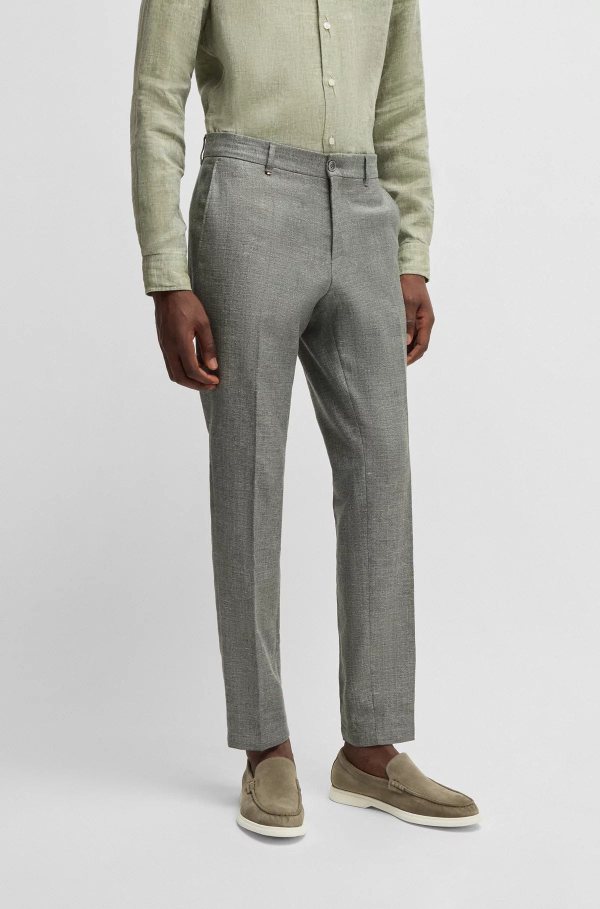 Featuring a subtle, easy-to-match pattern, these BOSS Menswear trousers are ideal for wedding season. Crafted from a linen and stretch blend.