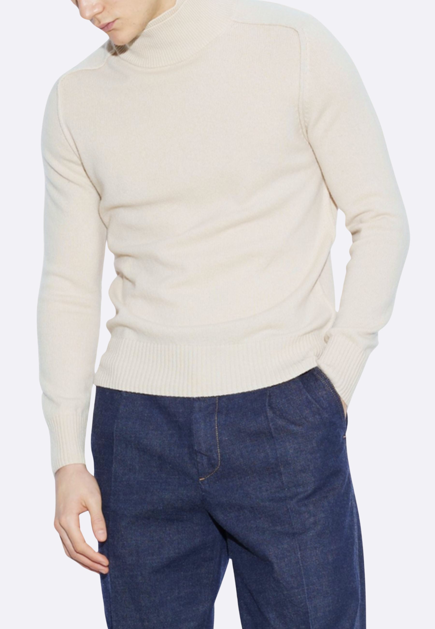 The design features a double turtleneck, a distinctive detail that combines style and functionality: it protects from the cold without sacrificing elegance and gives the garment a modern and sophisticated character. The ribbed cuffs and hem ensure an impeccable fit and a clean line.
