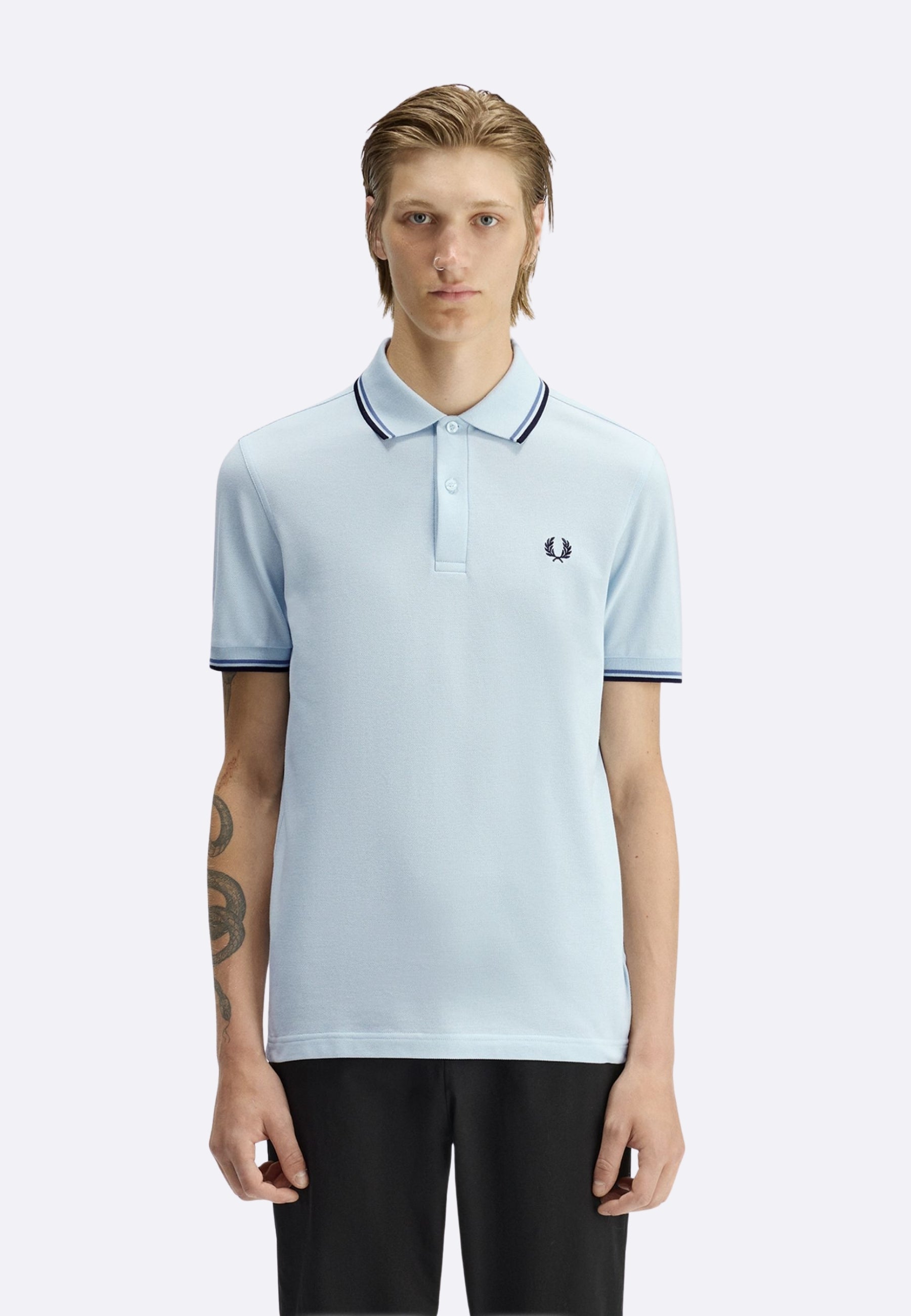 FRED PERRY POLO M3600 96A LIGHT BLUE WITH DOUBLE BLUE/LIGHT BLUE TRIM