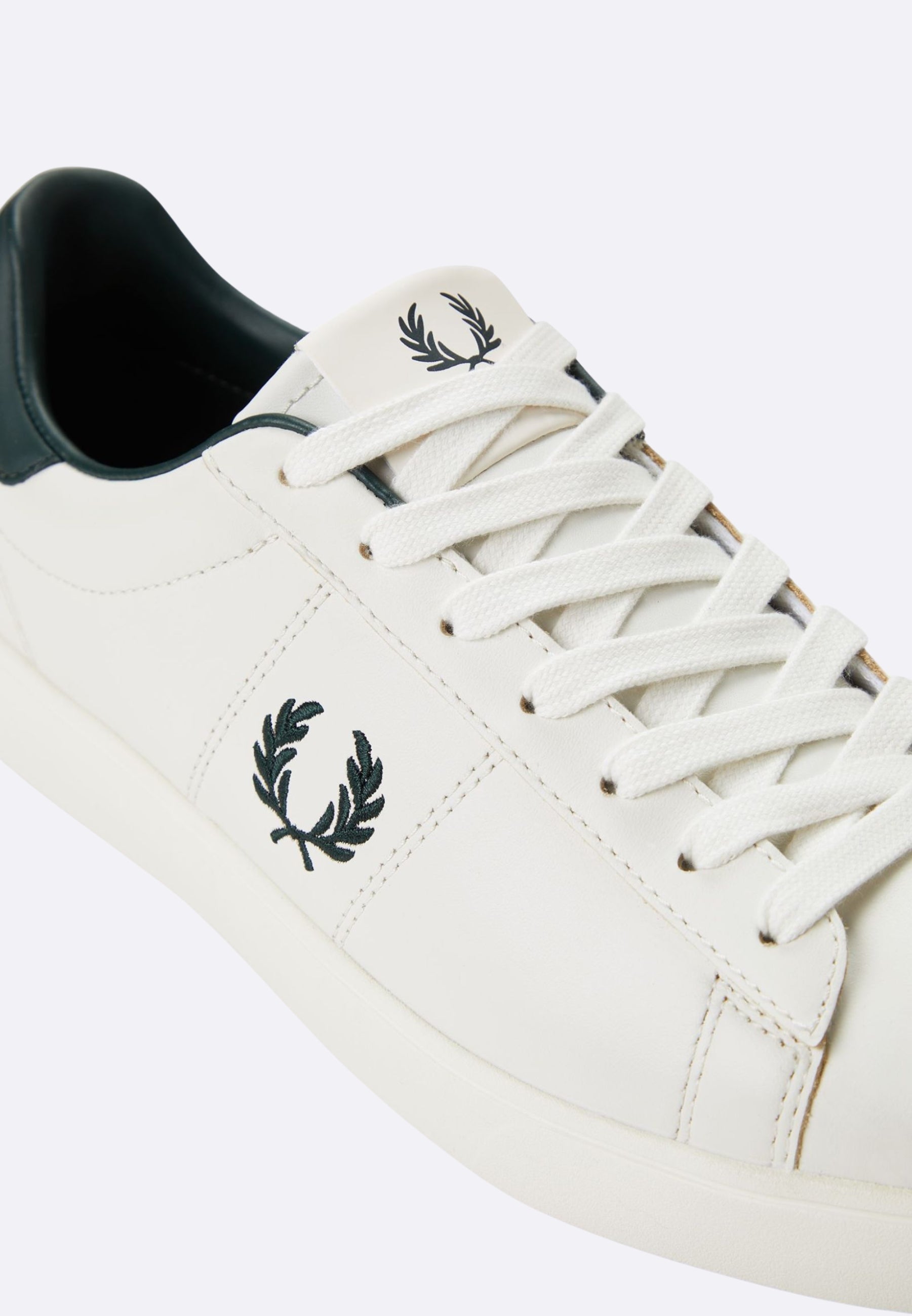 Full-grain leather upper / Contrast heel tab / Embroidered laurel wreath on side panel / Twill lining / Tone-on-tone stitching