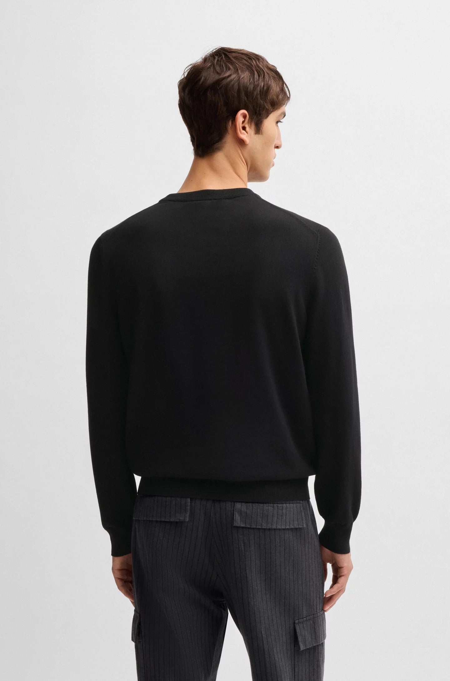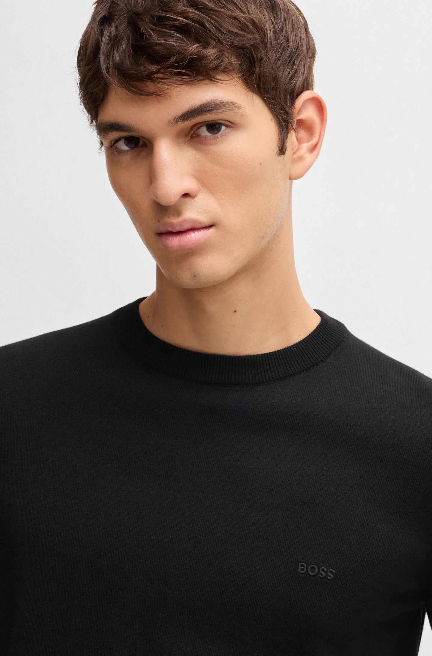Boss Maglia Girocollo Pacas in Cotone Nero con Logo
