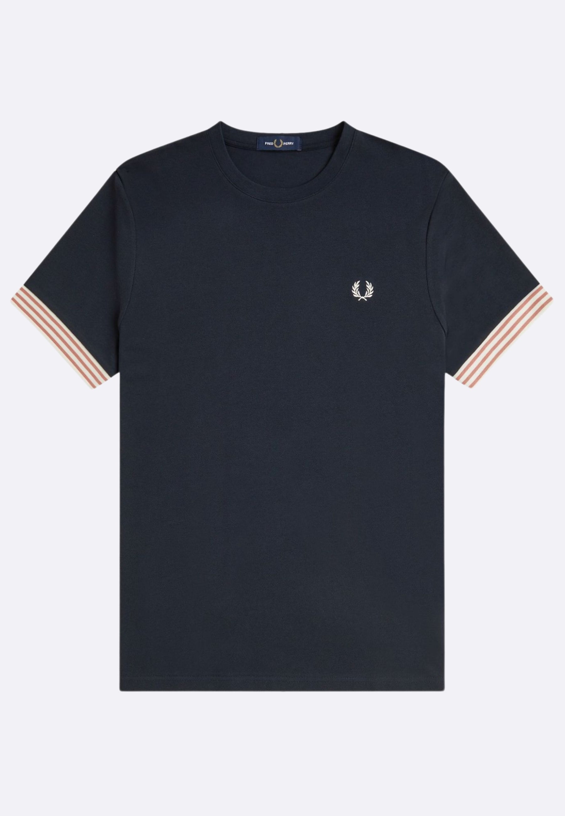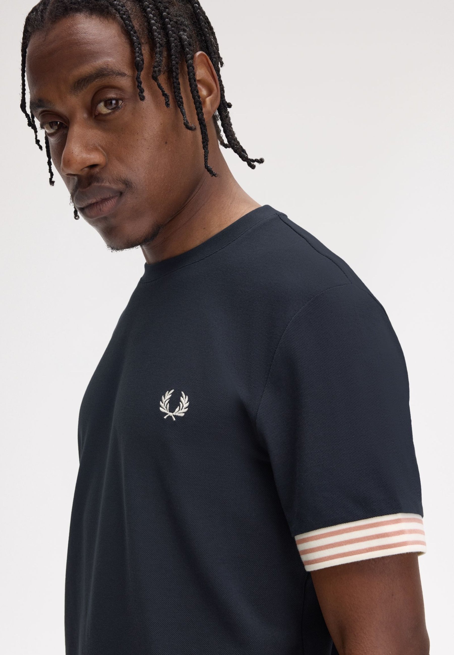 Fred Perry T-shirt in Piqué Blu con Bordini su Manica - M7707