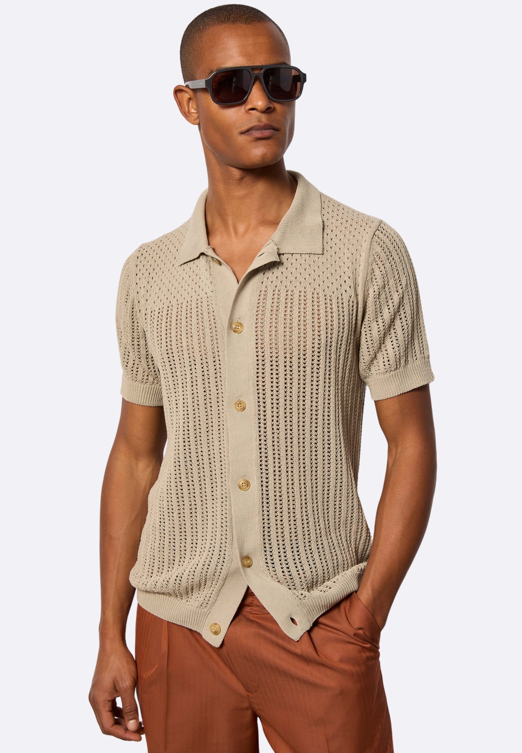 Il tessuto in maglia traforata garantisce traspirabilità e un look fresco, perfetto per occasioni informali o smart-casual.