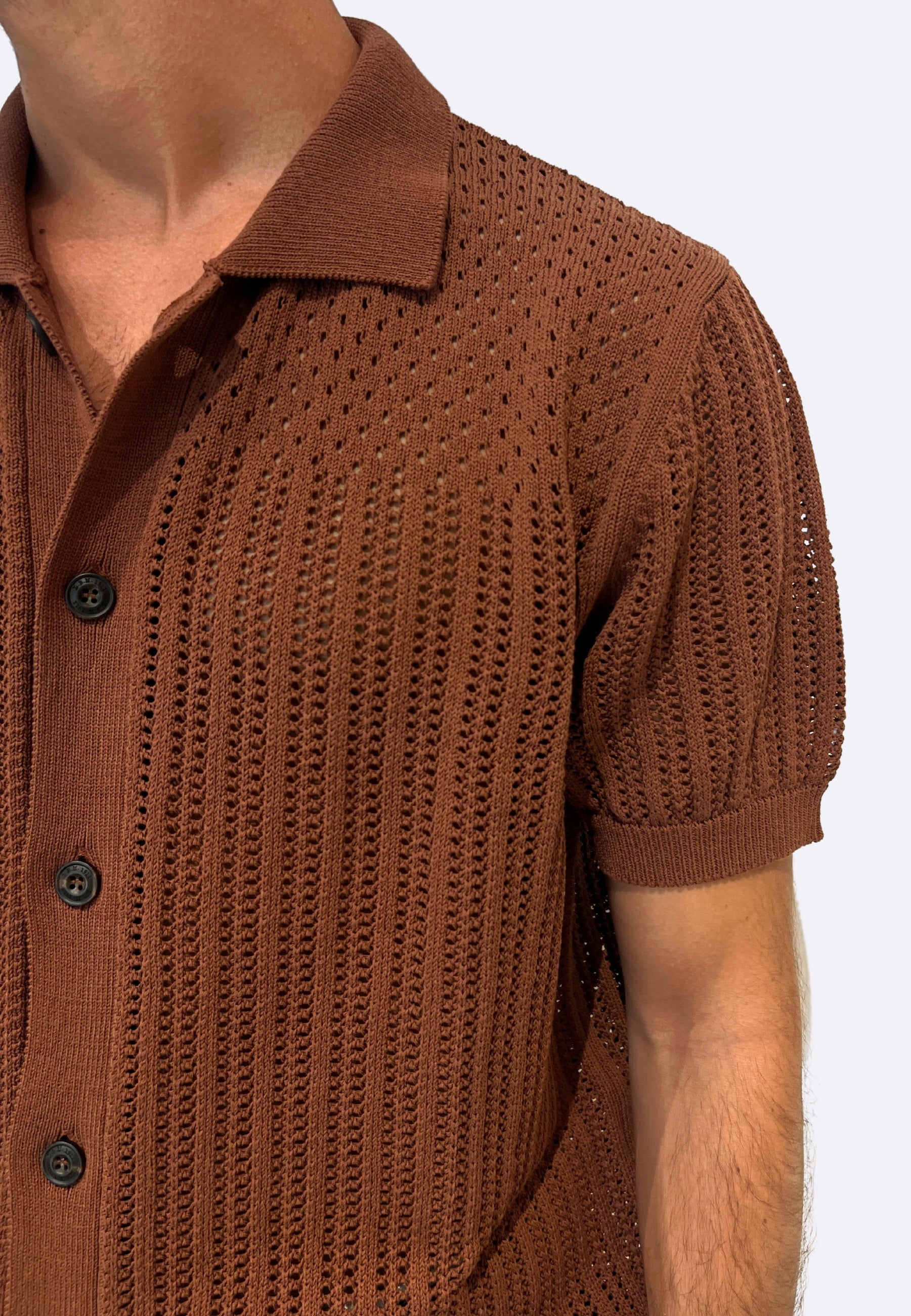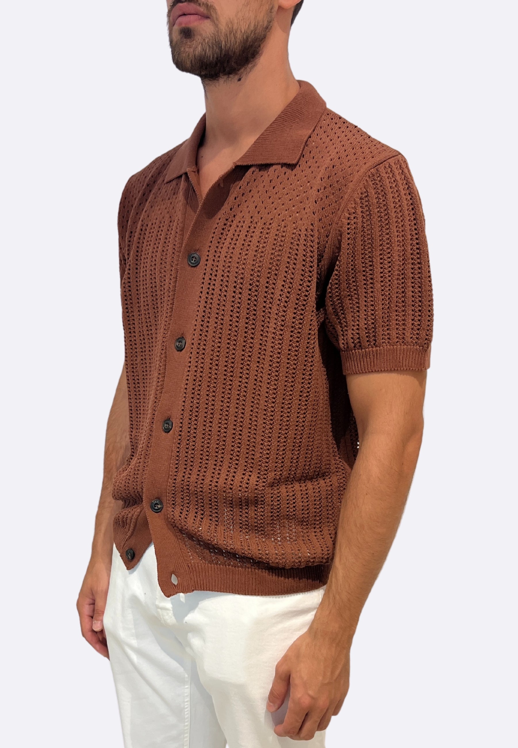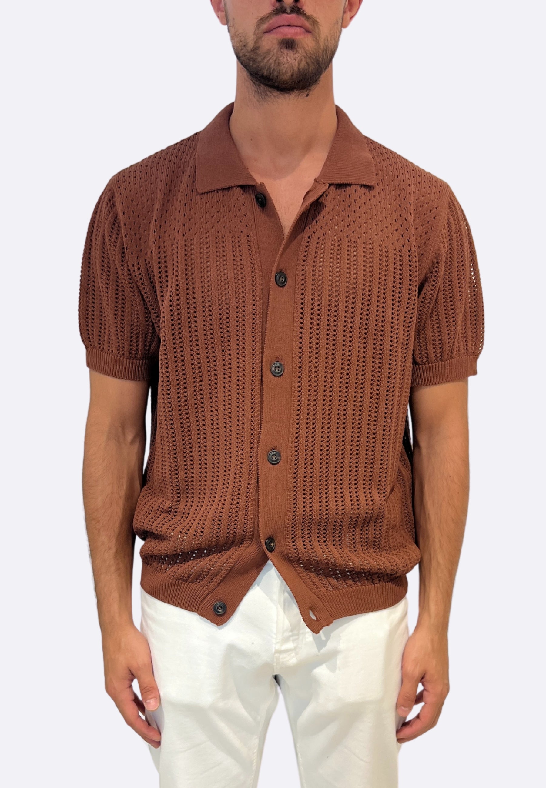 Il tessuto in maglia traforata garantisce traspirabilità e un look fresco, perfetto per occasioni informali o smart-casual.