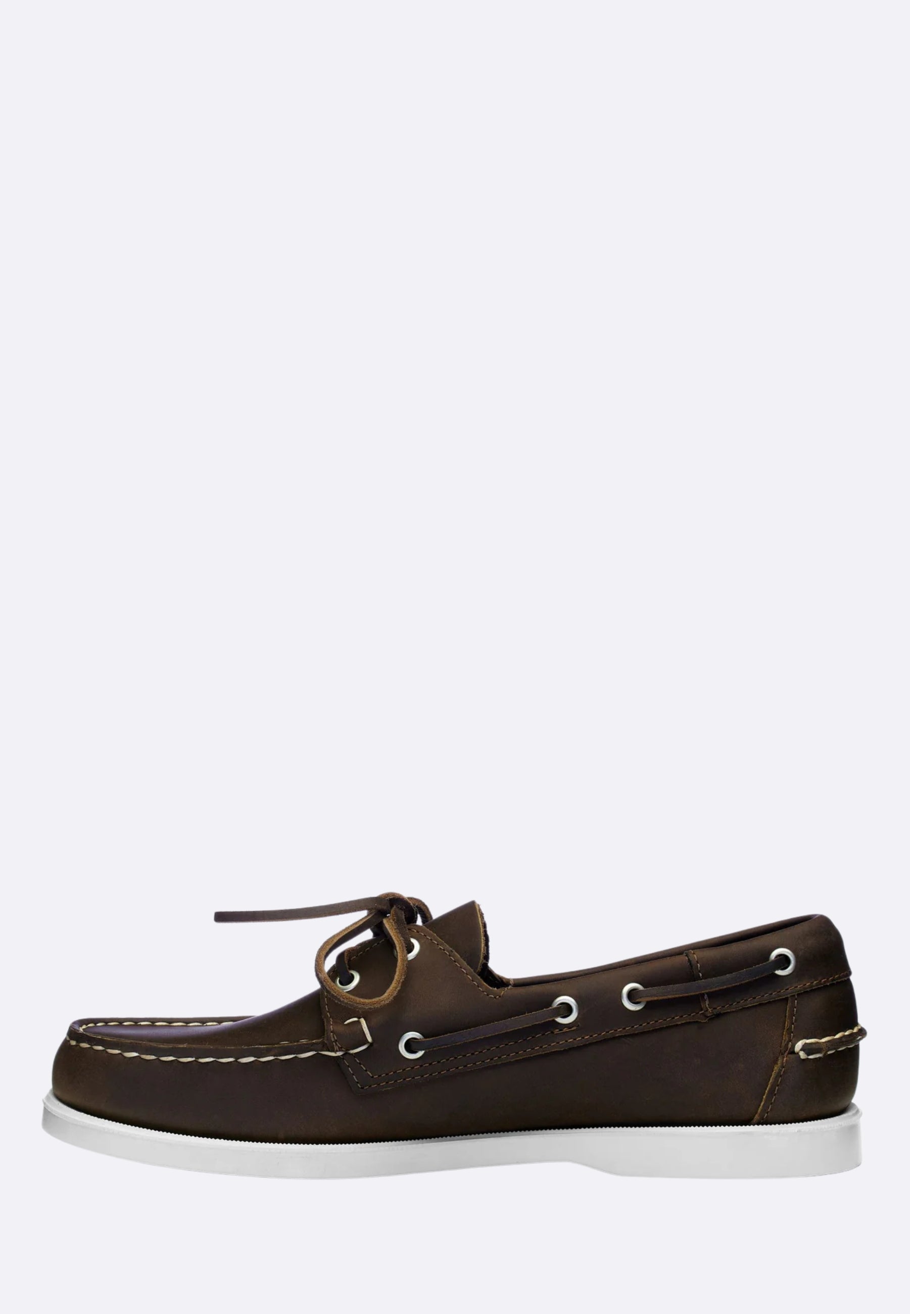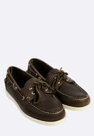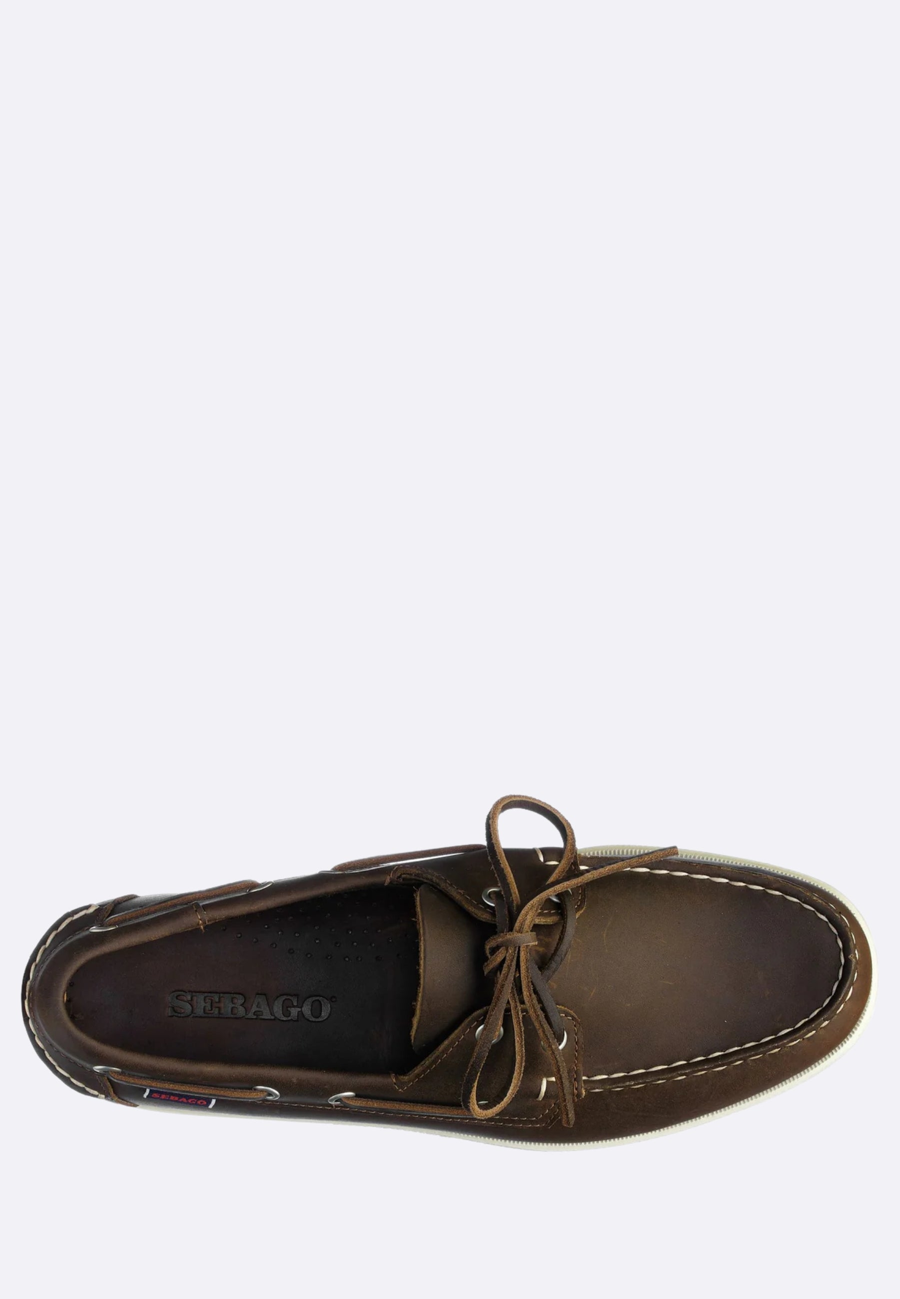 Scarpa da barca Sebago realizzata con un unico pezzo di pelle oleata e cucita a mano con la migliore lavorazione artigianale, di colore testa di moro. Creata per avere un look esclusivo e durare a lungo, è dotata di soletta in pelle, sistema di allacciatura a 360° in cuoio e suola non- marking in gomma striata antiscivolo - per offrire una presa stabile in tutte le condizioni atmosferiche. I mocassini "Portland" hanno nel loro stesso DNA un legame e un affetto innato verso la città di Portland